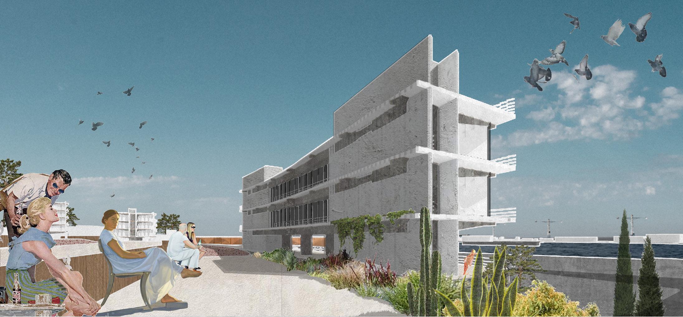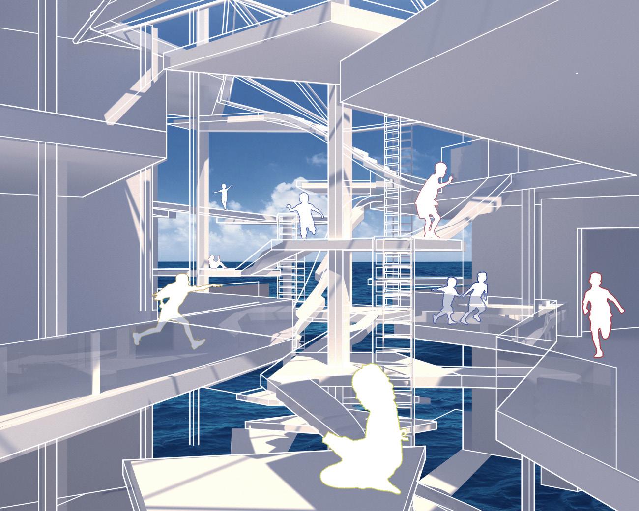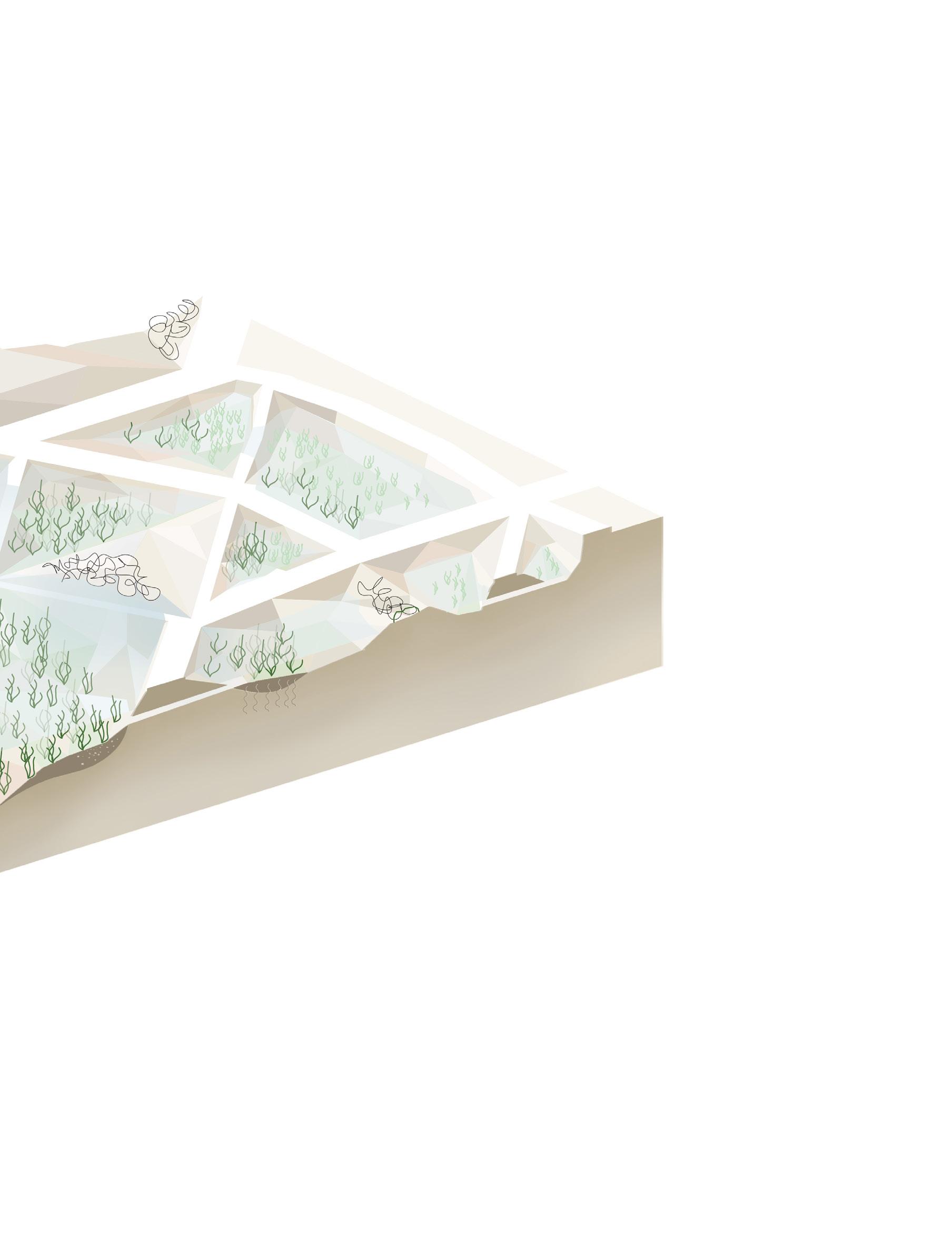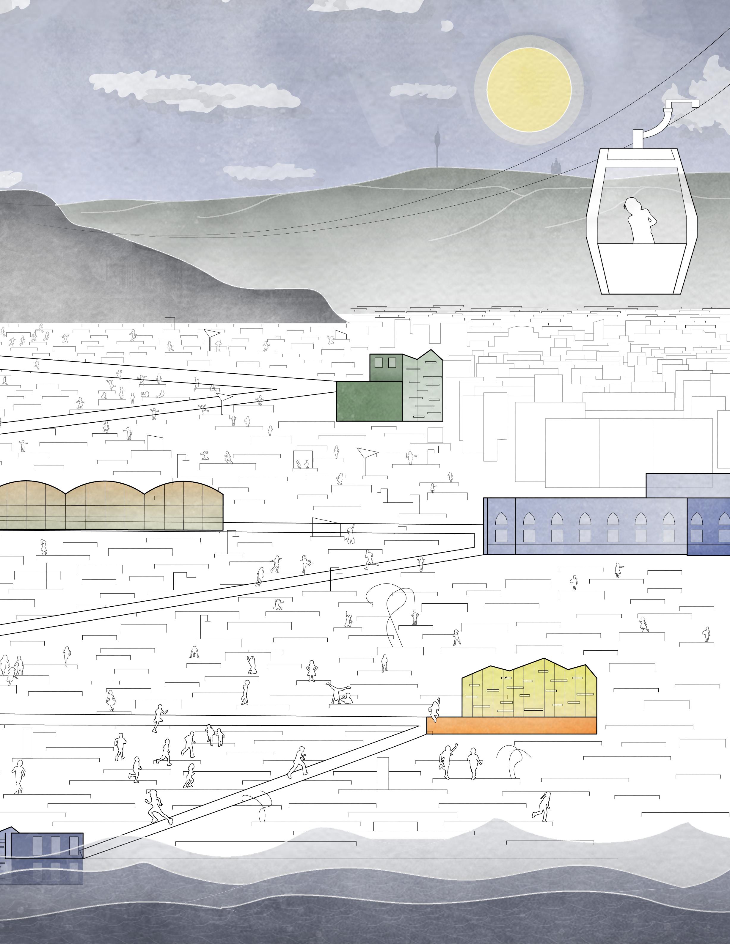 This project seeks to create both public space and a residential community focused on Mediterranean climate and ecology. It returns a space that is currently mostly inaccessible infrastructure back to the people and ecology, giving them a space of relief for conservation and contemplation. The buildings guide people through the wetland, allowing them to learn about the local climate while also being able to engage in cultural or commercial activities. Residential areas allow people to be more immersed in the wetland and engage in directed and necessary research related to costal climates. The buildings themselves work to support the wetland, guiding wind and water to support plant life and retention needs. Through these architectural strategies, the wetland unites the city, mountain, and sea.