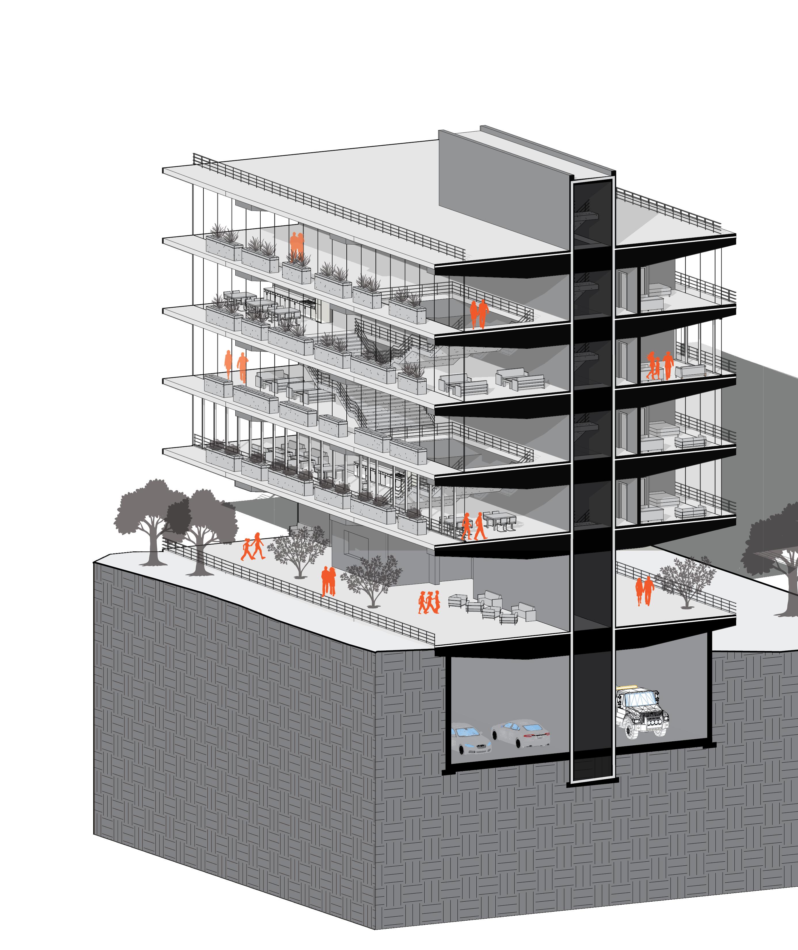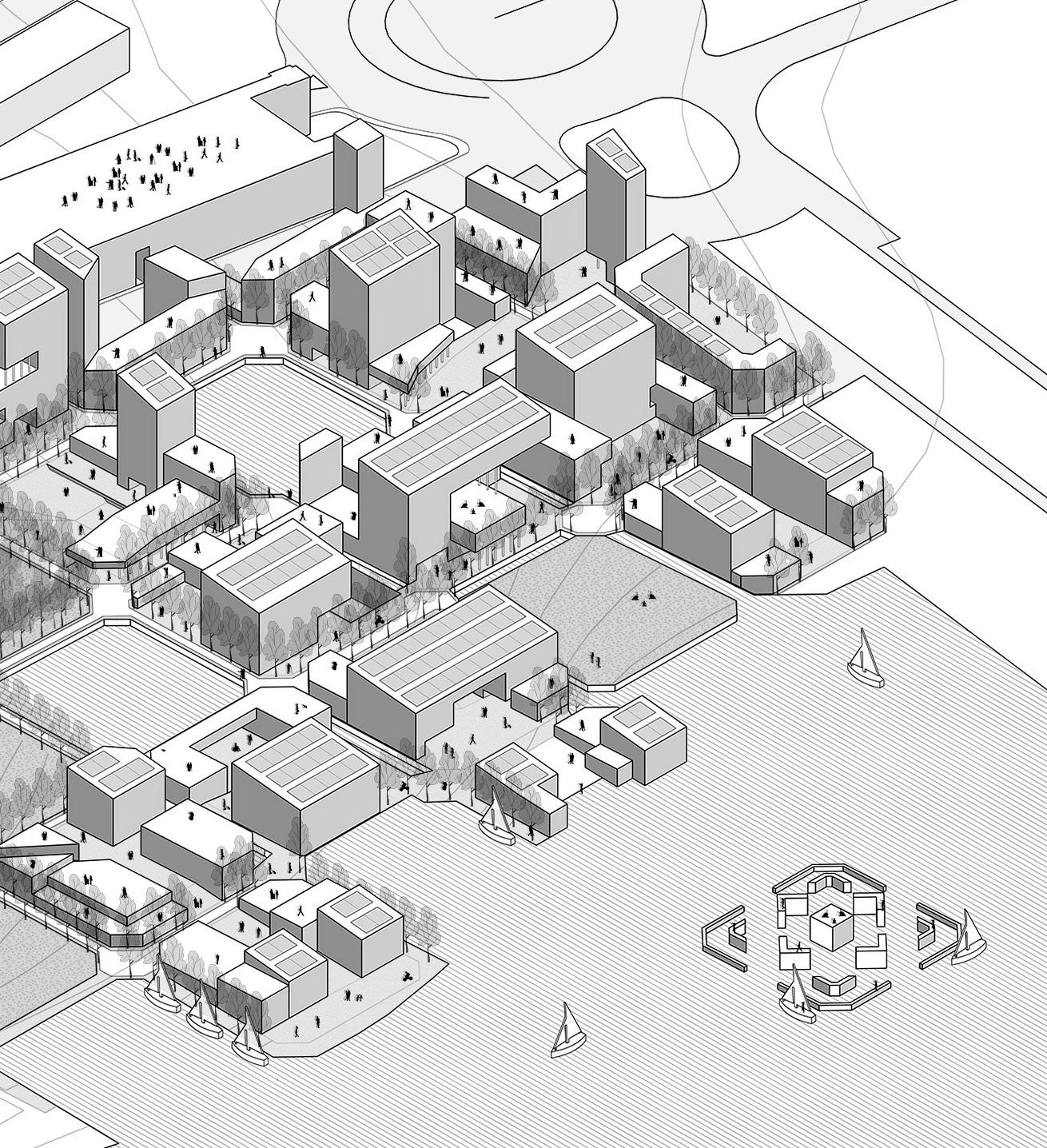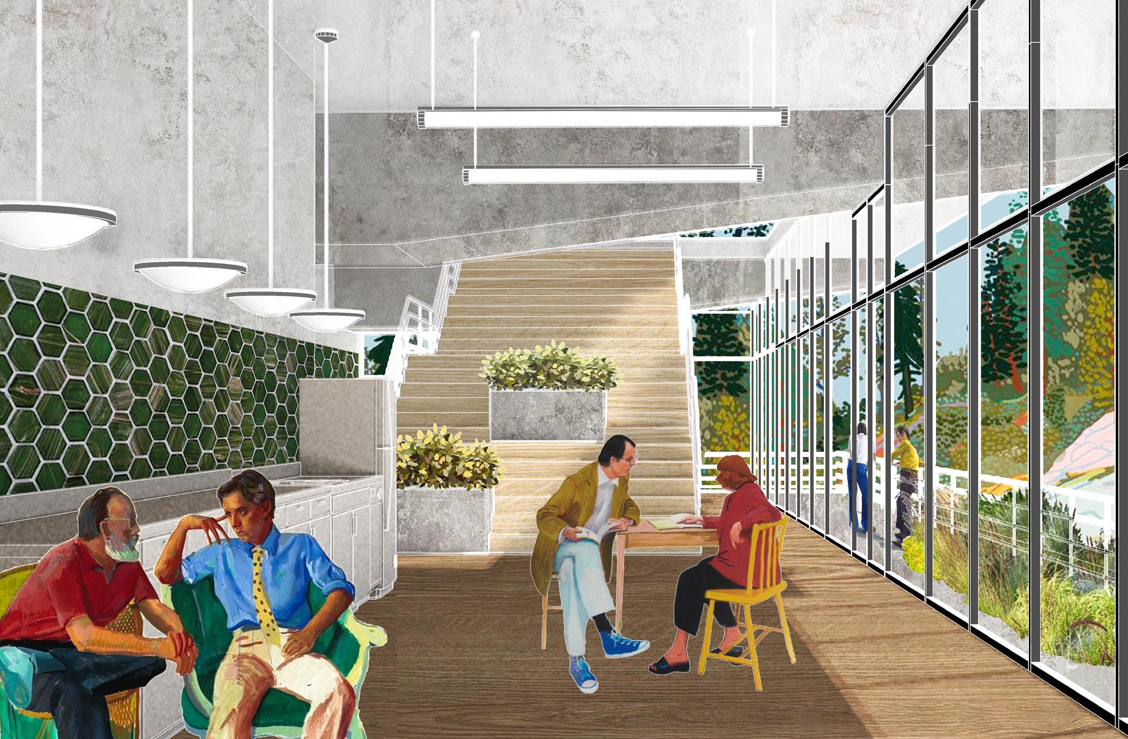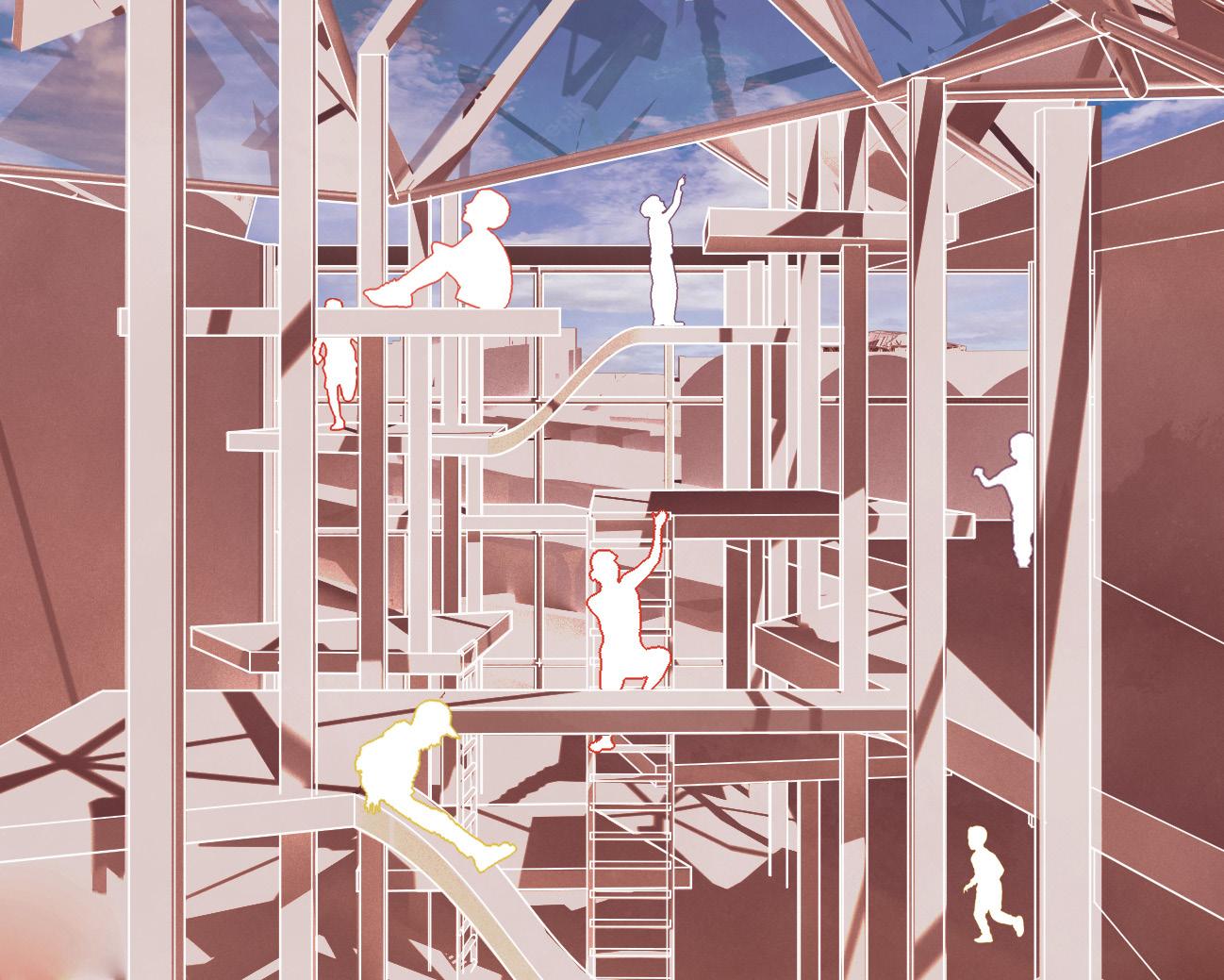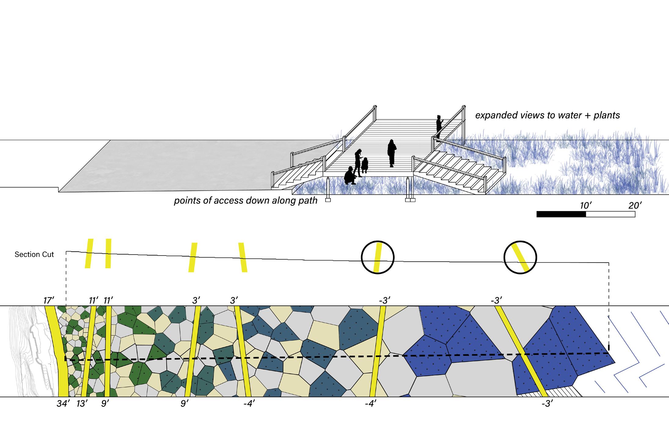 This project seeks to create both public space and a residential community focused on Mediterranean climate and ecology. It returns a space that is currently mostly inaccessible infrastructure back to the people and ecology, giving them a space of relief for conservation and contemplation. The buildings guide people through the wetland, allowing them to learn about the local climate while also being able to engage in cultural or commercial activities. Residential areas allow people to be more immersed in the wetland and engage in directed and necessary research related to costal climates. The buildings themselves work to support the wetland, guiding wind and water to support plant life and retention needs. Through these architectural strategies, the wetland unites the city, mountain, and sea.