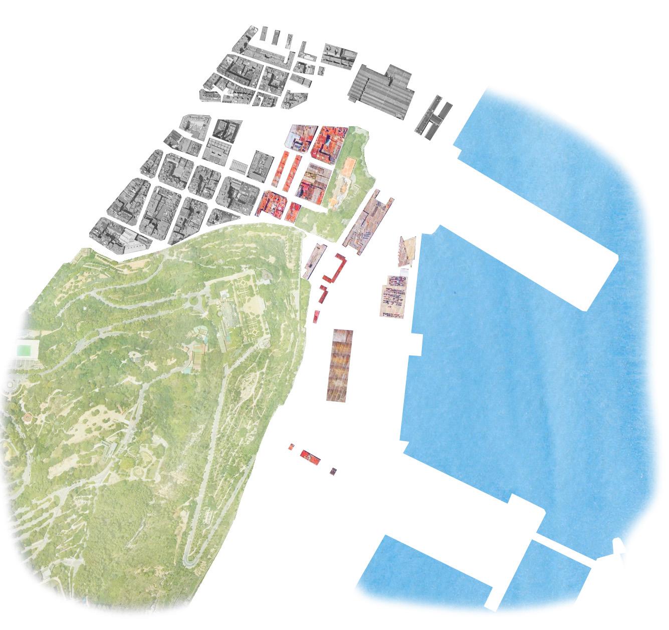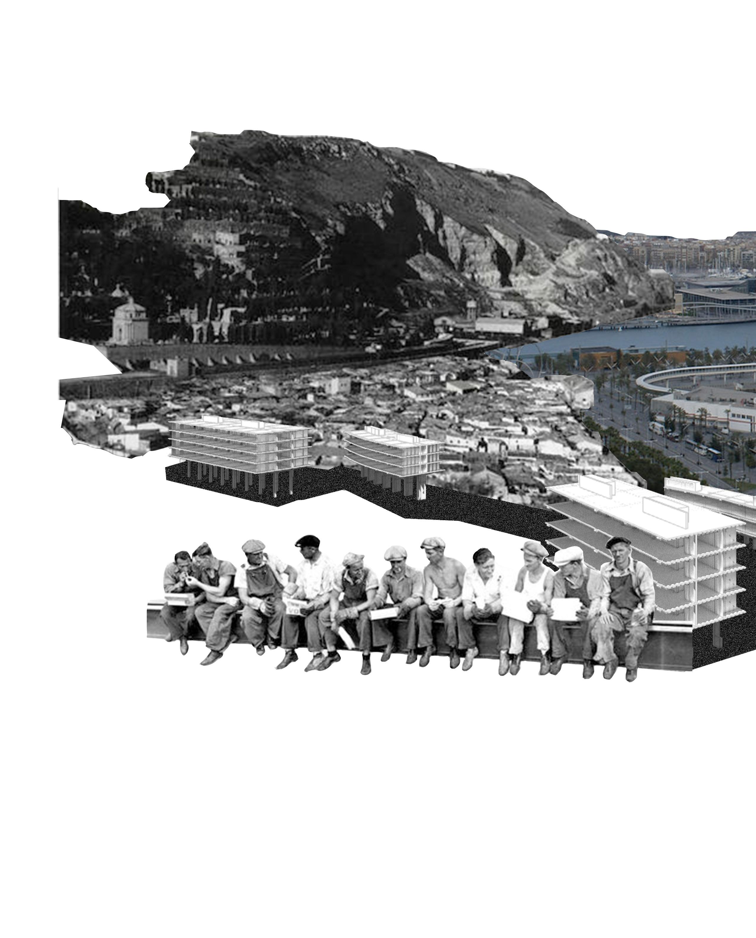 This Fall 2023 we have been working in a vacant place, an unfinished spot, on the city border. This year the title of the studio was “Waiting for a city’s arrival”. We chose that name because the site proposed is an empty place that seems promptly will be occupied by some kind of urbanity. Our studio site is today a void, a spot physically compressed by the Montjuic mountain, the city, and the sea. A topographical complex place, an intersection between the mountain and the water. A place with similar conditions to the ones that Ignasi Sola de Morales defined as “terrain vague”. The studio site is an empty space in the periphery of the city grid, without urbanity but full at the same time of basic infrastructures. Roads, highways, train rails tracks and harbor facilities are filling the site today. But beyond its uncertain condition, this is not any kind of place on Barcelona’s periphery, this is an important spot for the city. This is the entrance to Barcelona coming from the south, the main gate to the city from the airport, and the entrance for the big cruises coming from the Mediterranean Sea.
