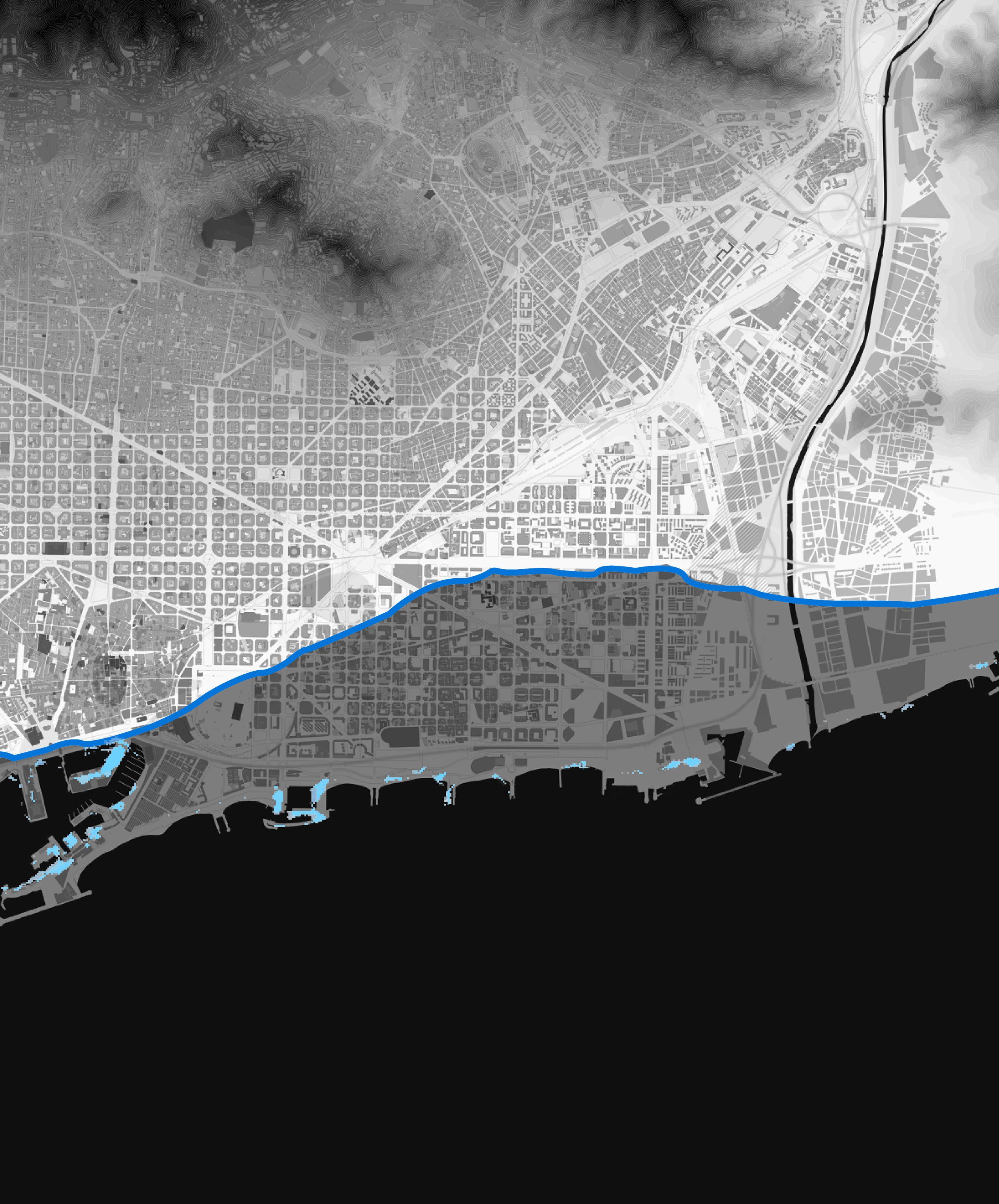 This course will be focused on one of the main historical urban topics of Barcelona. Barcelona is delimited by four main geographic borders. On the North side, the Collserola Mountain defines the biggest park of the city and at the same time determines the limit of the city with the Valles region. On the East side, the park around the Besos river creates one of the most important accesses to the city and marks the division between the cities of Santa Coloma and Badalona. On the West side, the Llobregat river fixes the third natural limit of Barcelona. Finally, on the South side, the beach defines one of the most reviewed and rebuilt frames of the city. The relationship defined between the city and the sea side has changed several times along with the history of Barcelona, and it hasn’t reached its final form yet.