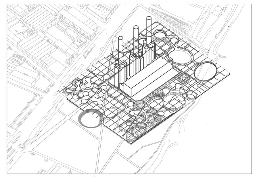 The magnificent presence of the 3 chimneys in the Barcelona skyline makes this spot a crucial piece for the Barcelona shoreline future. The scale of this brutalist concrete building, placed in a strategic place, could become the perfect catalyst to help connect the two sides of the Besos river beds.