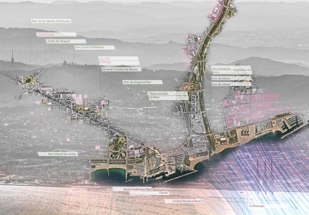 This course will be focused on one of the main historical urban topics of Barcelona. Barcelona is delimited by four main geographic borders. On the North side, the Collserola Mountain defines the biggest park of the city and at the same time determines the limit of the city with the Valles region. On the East side, the park around the Besos river creates one of the most important accesses to the city and marks a cut of the coast dividing the city in two different parts. On the West side of Barcelona, the Llobregat river fixes the third natural limit of Barcelona. Finally, on the South side, the beach defines one of the most reviewed and rebuilt frames of the city. The studio will revisit and debate various contemporary urban and landscape topics of the city of Barcelona that are under discussion in the architecture realm. But, beyond those urban and social topics, the studio will fix its focus on one city area which defines the modern coastal cities: the Metropolitan Shores. The relationship defined between the city and the seaside has constantly moved along with the history of Barcelona, and, it hasn’t reached its final form yet. To define the Metropolitan Shoreline, we will work on one of the most iconic infrastructure and landmarks of the city: the 3 Chimneys of the Besos River 3X. The studio will analyze and design this strategic node, where geography reveals its forces meeting the city and infrastructures. A missing piece in the puzzle of the Barcelona shoreline design. A piece that will help to define the Metropolitan Shoreline of Barcelona.