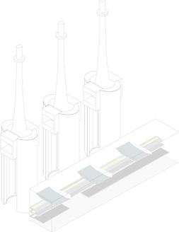 The three chimneys loom large over St. Adria, Badalona, and Barcelona, rising from their layered histories of industry, air pollution, protest, and death to become a cultural icon in a new era of urban production. These layers of time and change are allowed to continue in the transformed site as the chimney structures are opened to the elements and situated as the central point of arrival for the water system and a nexus of community. Where once stood massive coal burning furnaces now vertical water treatment infrastructure is made visible and sculptural, creating a way to experience the transformation of the water of the city from dirty to clean.