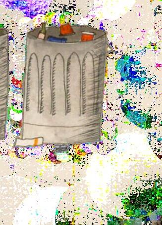 Dennis beckons me over to a covered plastic blue 50-gallon tank and puts one hand on the lid. As he lifts it up, I unconsciously lean in to see the swirl of red and yellow sludge filling the barrel, then stumble back a second later when the stench hits me.