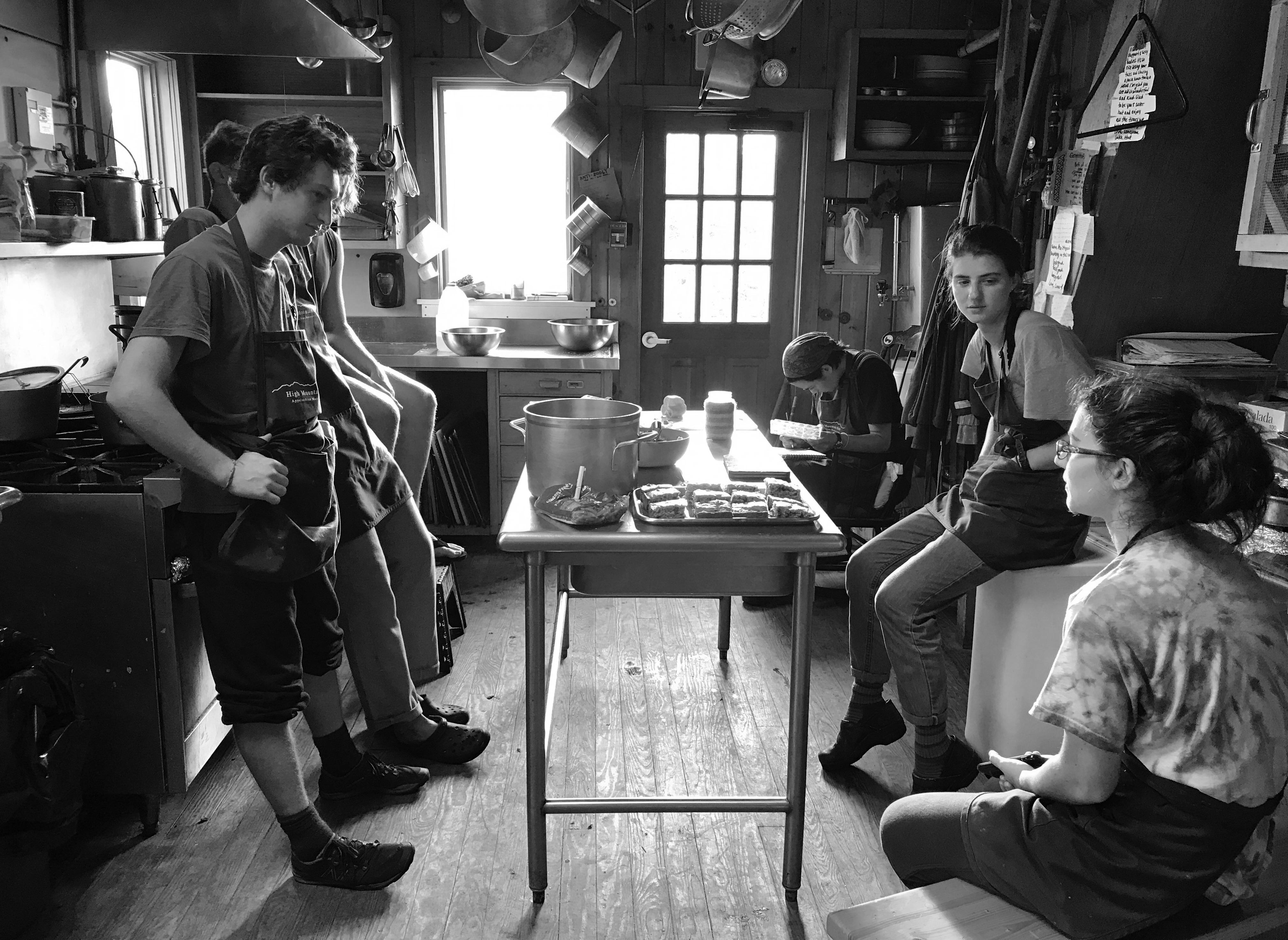 June 3rd, 2017: my first Saturday night serving dinner at a White Mountain Hut in New Hampshire, where I worked on crew (lovingly referred to as croo) this summer. Each high mountain hut is operated by about seven college-aged mountain folk who are responsible for feeding fifty guests each night, carrying supplies up and down from the huts, cleaning, and providing environmental education and trail advice. As night fell, a storm rolled in over Mount Lafayette. Despite the sheets of rain pouring down in the forty degree air, spirits remained high inside the hut. Many visitors see these huts as a vacation destination, so one of the duties of croo members is to keep guests entertained. That evening, we cooked a turkey dinner while dressed in hippie costumes and Hawaiian skirts, as the guests’ rambunctious children ran between the bunks. As the night wound down, we joked about how unfortunate it would be to get caught in the storm, acknowledging that experienced hikers would know better
