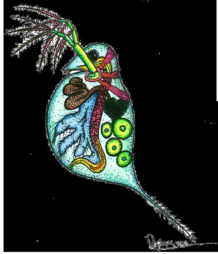 UVM alumnus Victoria Pinheiro’s work brings artistic expression to the forefront of environmental science. Working as a graphics specialist for the EarthLab & Climate Impacts Group at the University of Washington allows her a chance to use communication skills to convey environmental messages in a professional environment while still pursuing her graduate education. Pinheiro received her first masters degree from UVM in Natural Resources, and worked in the Rubenstein School’s Ecosystem Science Lab. The pieces on display here are part of a series on zooplankton; the invertebrates are tinged with bright colors to highlight and showcase their complex systems.