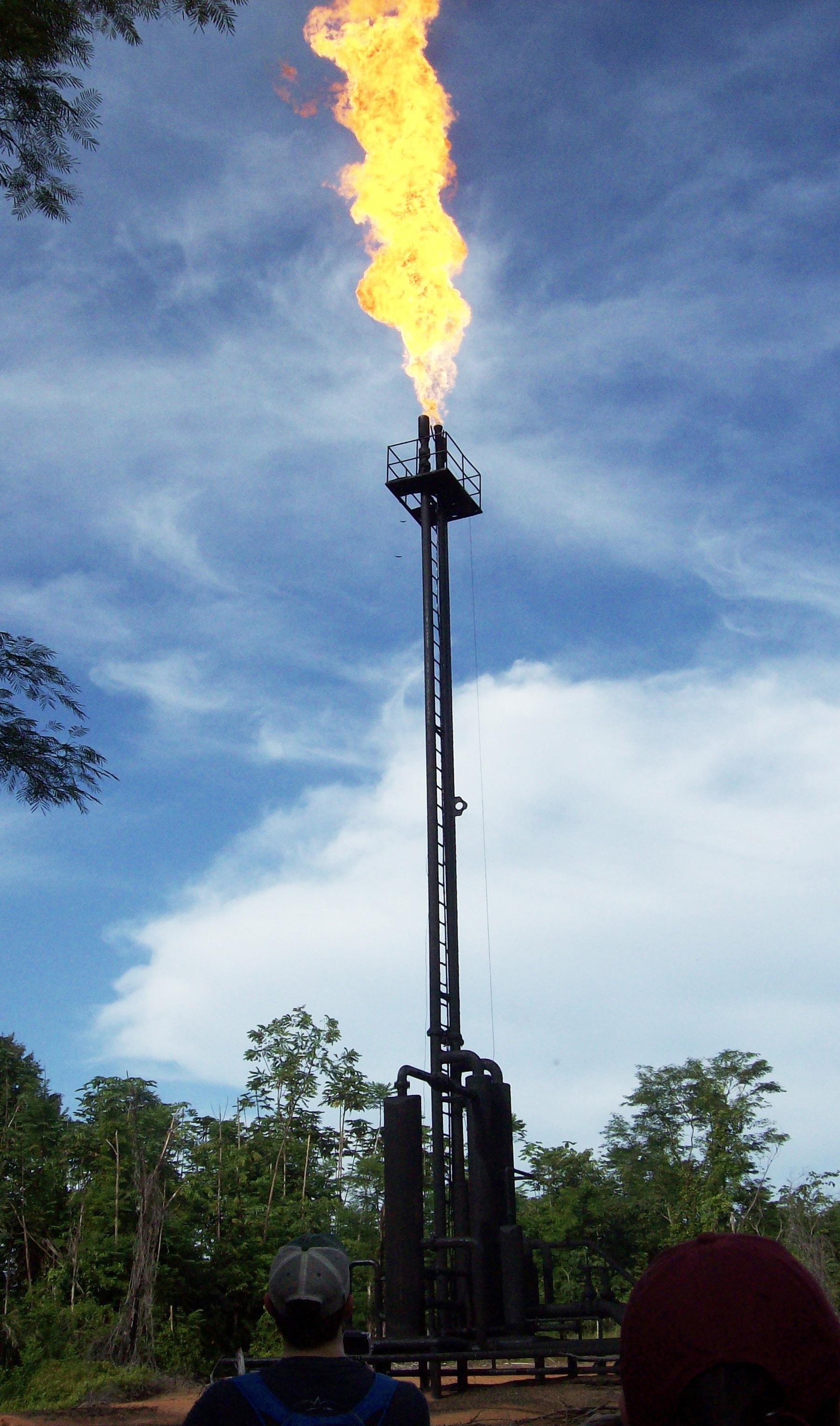 Even atop the tallest kapok tree, the likes of which are capable of reaching impressive heights of nearly 200 feet, the vegetation is so thick that it is nearly impossible to visualize the oil rig producing the artificial whirr. What you cannot see is the flame of burning natural gas as it pierces the blue sky above it. The gas is merely an undesirable byproduct in the small quantities in which it is produced; therefore, it is more cost-effective to simply burn the unwanted fuel, saving storage for the true prize: oil.