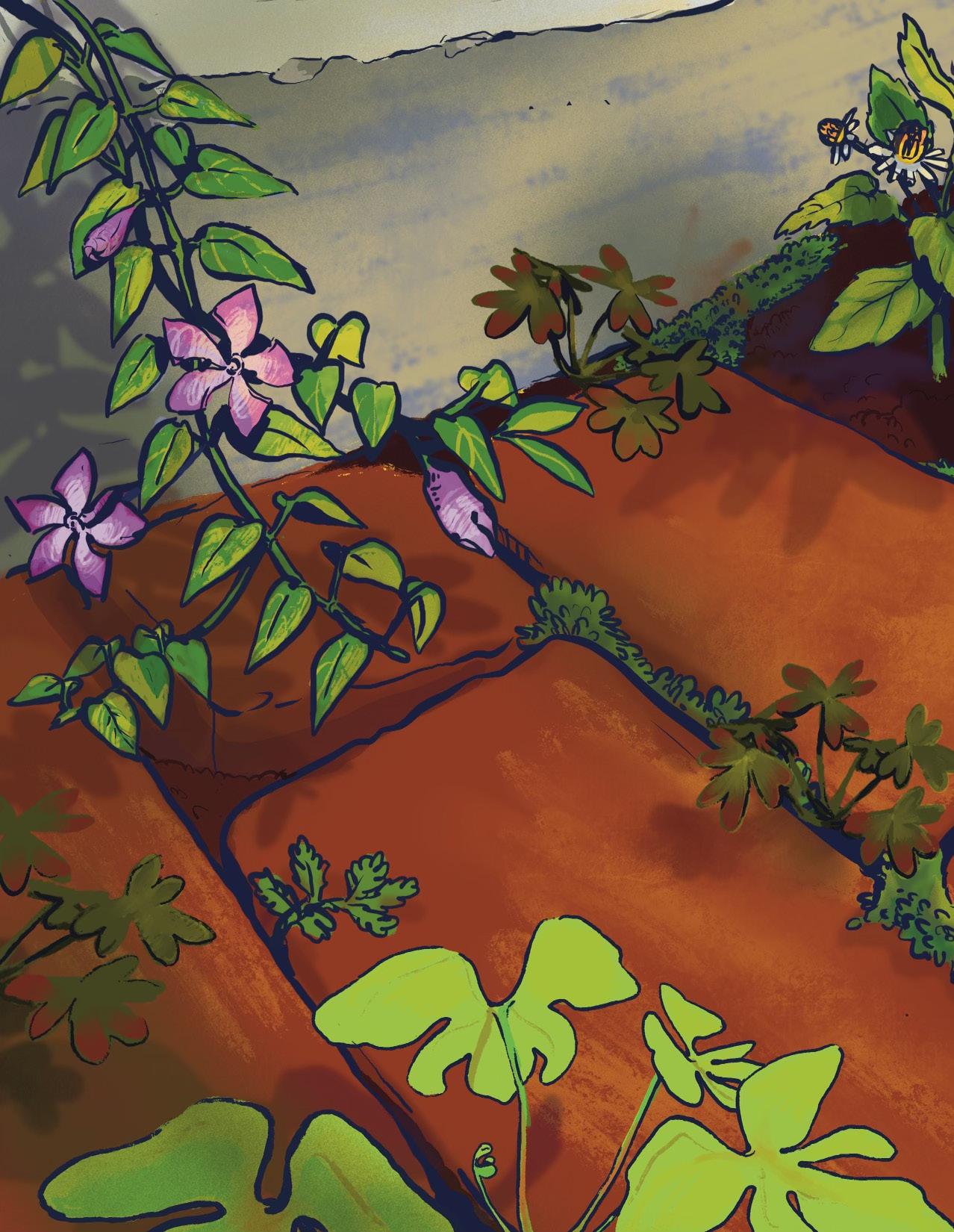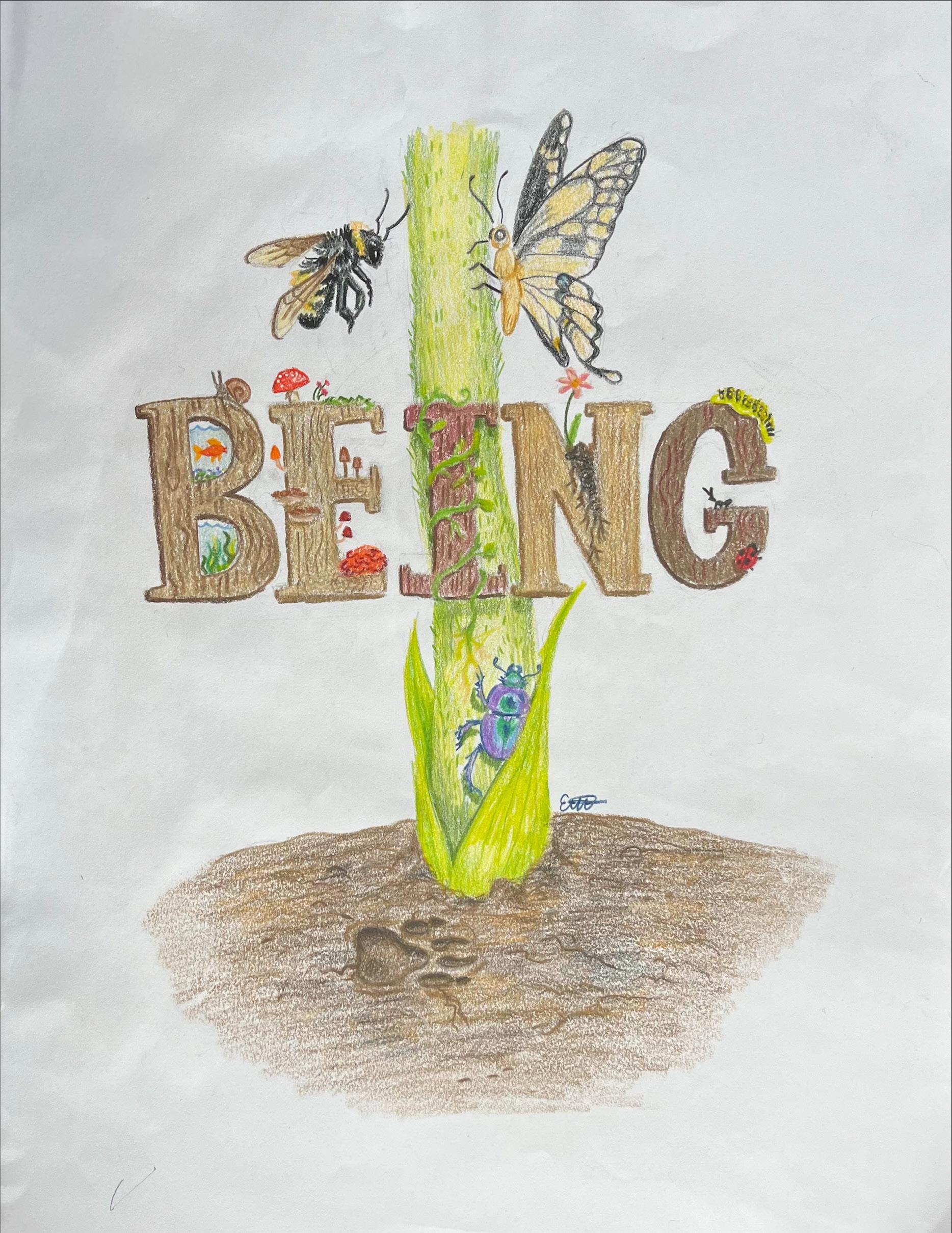 This piece is a digital illustration highlighting the propensity for life to show up in unlikely places. The herbaceous plants rising through the cracks of the brick were inspired by a small scene I stumbled upon while on campus. I found myself fascinated by how soils had collected in the unused areas of a simple brick pathway, which drew in a haphazard assortment of plants, moss, and other organisms. Despite negative impacts of humankind’s increasing consumption on the climate and biodiversity of Earth, life will find a way to persist between the cracks.