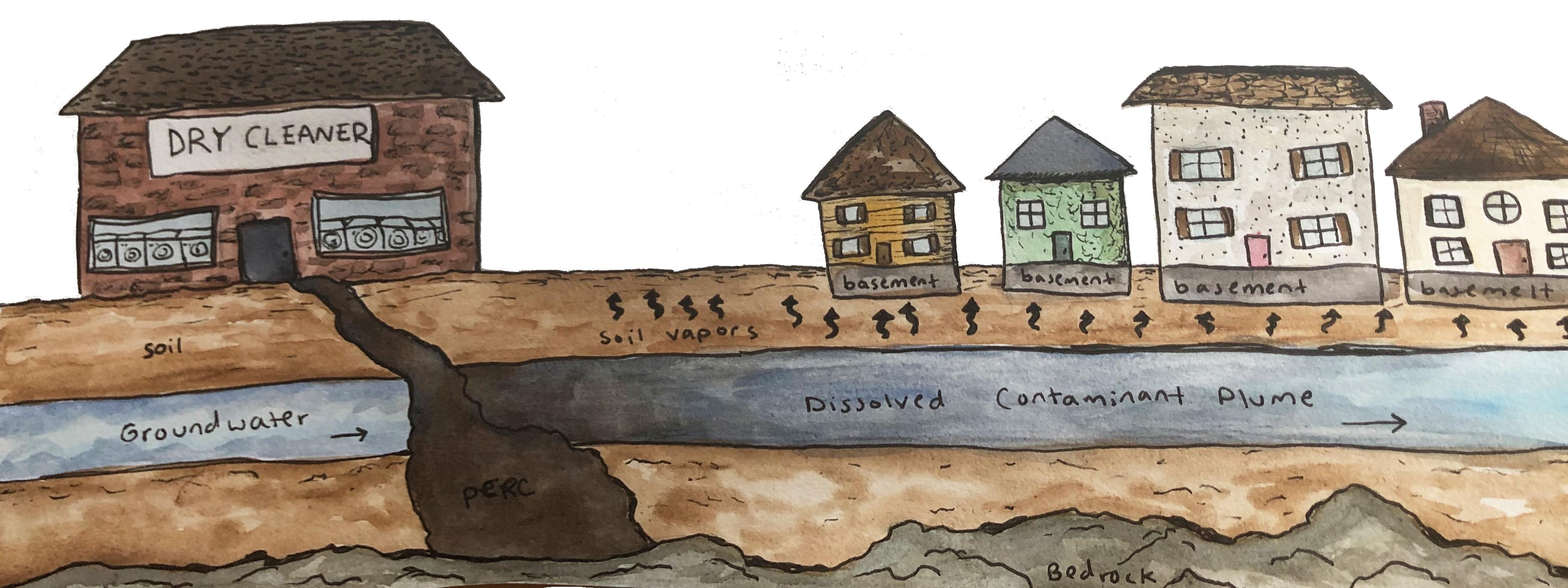Both chemicals are volatile organic compounds, which means that they vaporize and move from groundwater to open spaces in soil easily. The vapors can enter houses through crevices in foundations, basements, crawl spaces, walls, or floors, and dissipate upwards throughout the house.