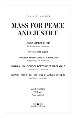 UVU Chamber Choir: Mass for Peace & Justice Program