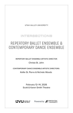 Vignettes: Kenna Jane Francis & Brooklyn Johansen/Chloe Bremser & Jordan Mulyangote, Kora Doman & Natalie Pitcher/Lucy Tolman & Addie Rocque, Emily Buell & Lily Fincher/Hailey Wankier & Katie Wiseman* “M” will represent Utah Valley University at the American College Dance Association Northwest Regional Conference this March in Las Vegas, Nevada.