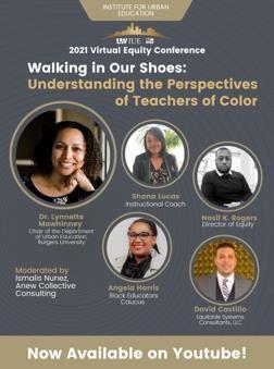 • Fall 2021 - Walking in Our Shoes: Understanding the Perspectives of Teachers of Color. Keynote speaker, Dr. Lynnette Mawhinney (Rutgers University), and a group of educators who represented teachers of color.