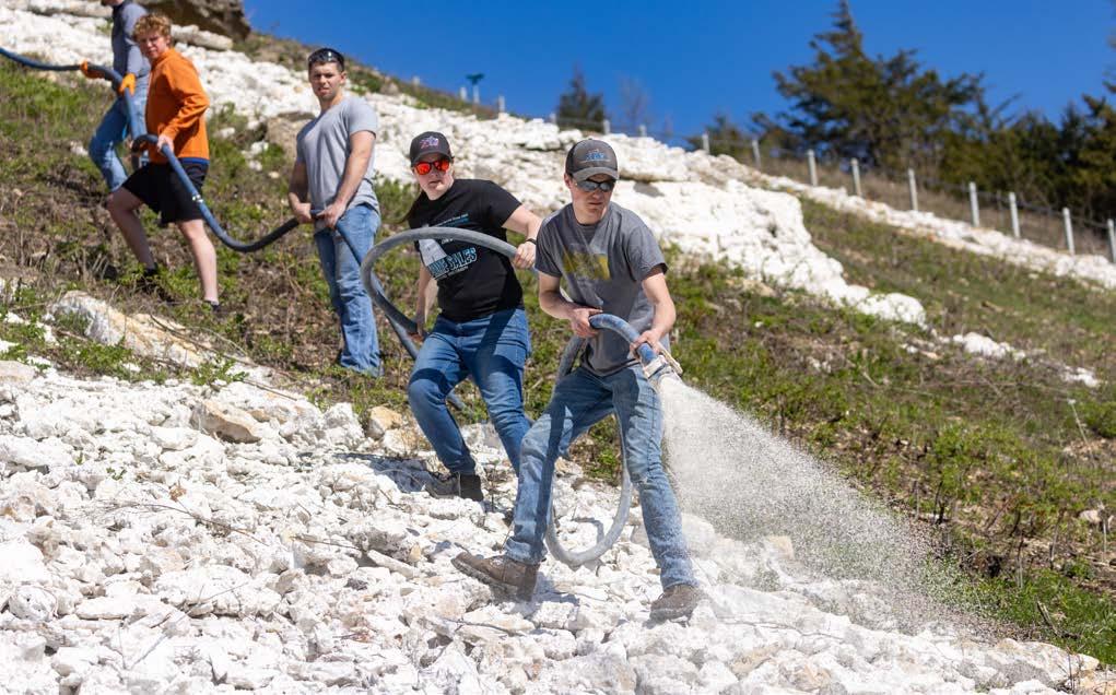Former UW-Platteville Society of Automotive Engineers (SAE) president, Cade Klefstad ’24, construction management, spearheaded a year-long restoration project to clear overgrown brush and trees that began to crowd and cover the iconic monogram. Drawing on his Northwoods logging background, Klefstad envisioned a long-term stewardship plan to preserve and enhance the landmark, which was first constructed in 1937 by mining engineering students.