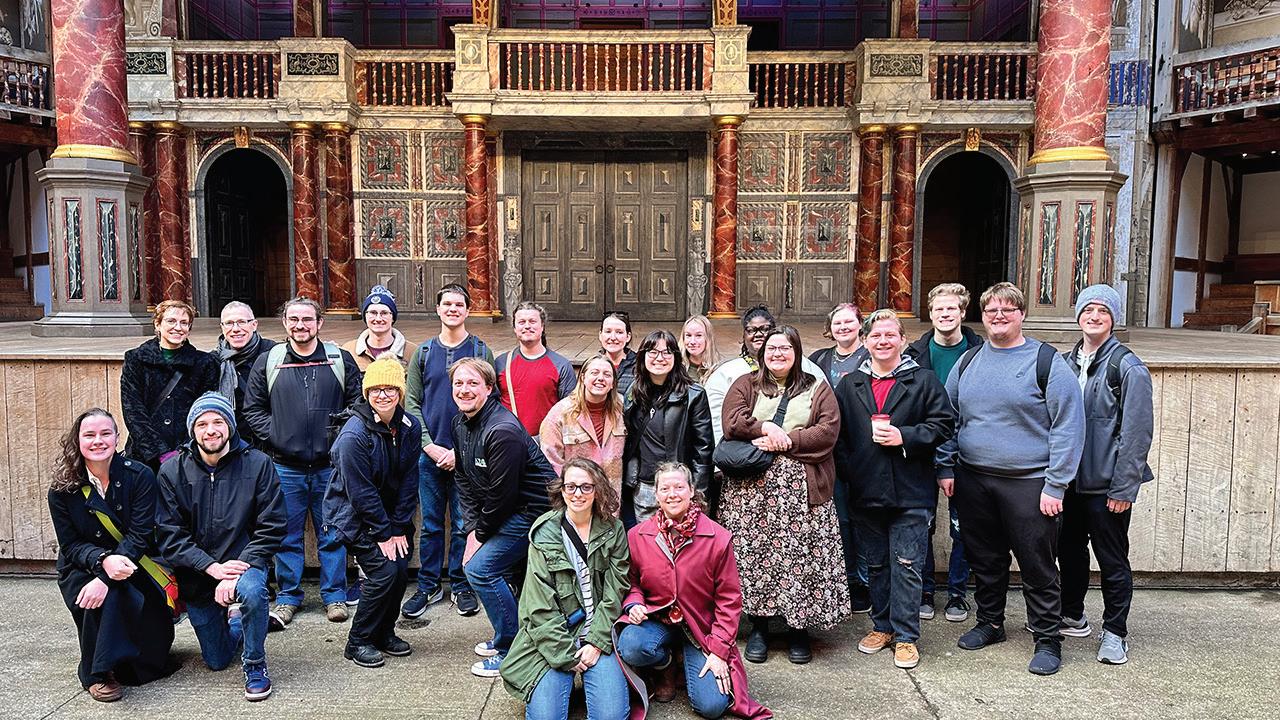 Dozens of UW-Platteville performing and visual arts students traveled across the pond to embark on short-term faculty-led trips to Europe over Winterim. Dr. Tyler Ostergaard, Associate Professor of art; and Gregory Nelson, Professor of art and Program Coordinator, led the Art Study Abroad to Rome. Dr. Bob Demaree, Director of choral activities; and Stephanie Klein, Associate Director of choral activities, organized the Chamber Choir London Tour. Dr. Ann Farrelly, Professor of theatre and Program Coordinator; Jeffrey Strange, Professor of theatre; and Sarah Strange, Senior Lecturer of theatre, guided the Theatre Study Abroad to London.