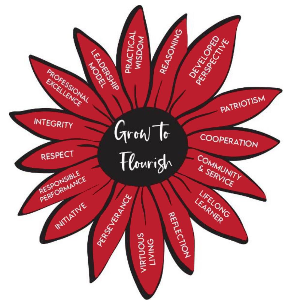 Project Grow, funded by the Kern Family Foundation, focuses on developing school leaders of virtue and provides support to school leadership in developing and implementing a school plan aligned to the character framework to foster human flourishing and rural school transformation in 82 schools in the Black Belt, South Alabama, and East Mississippi regions. Project Grow developed a network, with a membership exceeding 600, forging relationships and connections between the University and school leaders through conversations and professional development. Project Grow's work with faculty to select virtues aligned to education professional dispositions, to provide training on the character framework and to lend support to the College of Education faculty (COE) in revising the curriculum in five programs, weaving character throughout. Project grow's logo reflects the College of Education's values in each petal.