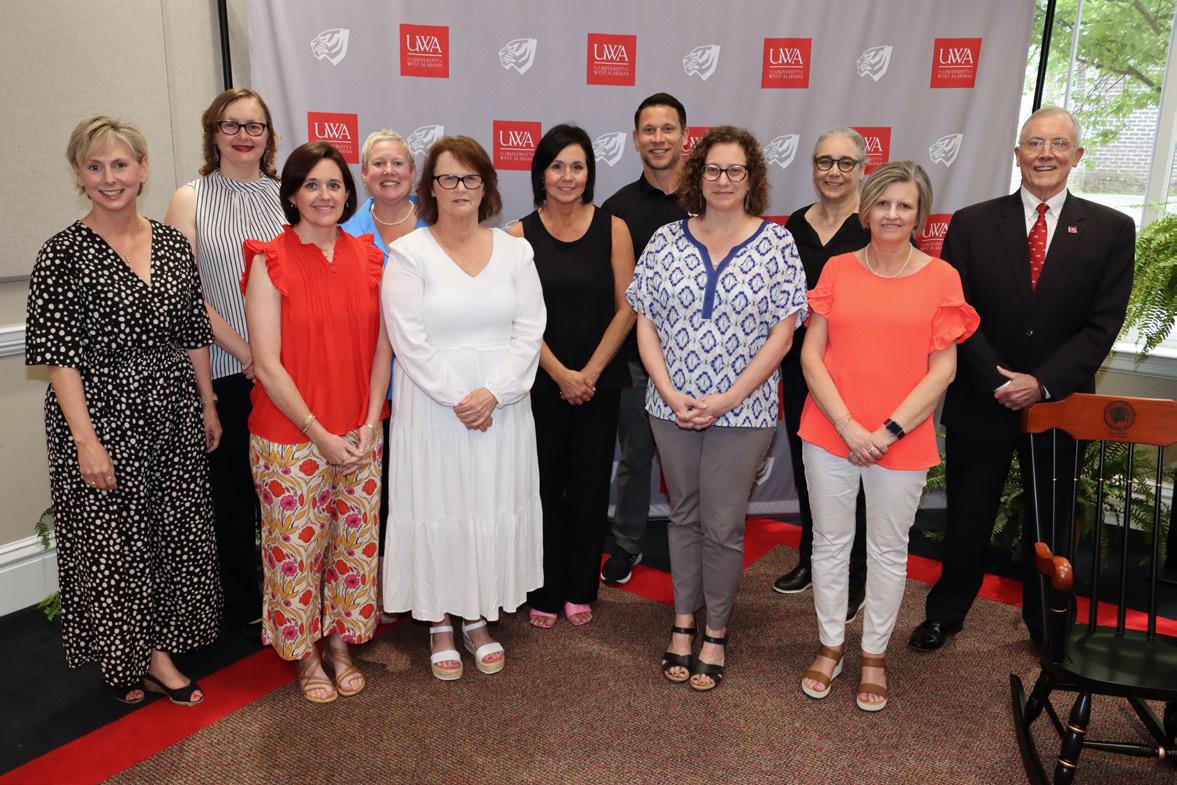 Each year, the University of West Alabama recognizes employee longevity and milestones at a ceremony and reception held in the spring. For the 2023-2024 academic year, milestone commemorations including 10, 15, 20, 25, 30, and 35 years of service as well as retirement for 10 longtime faculty and staff, reflect more than 1,000 years of service.