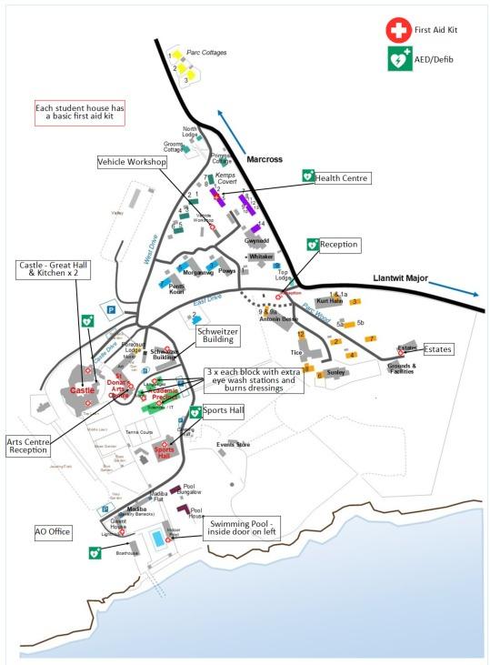6 Providing suitably equipped first aid boxes, AEDs and bags in designated areas, minibuses and for trips off-site. UWC Atlantic staff check and record all first aid equipment quarterly.
