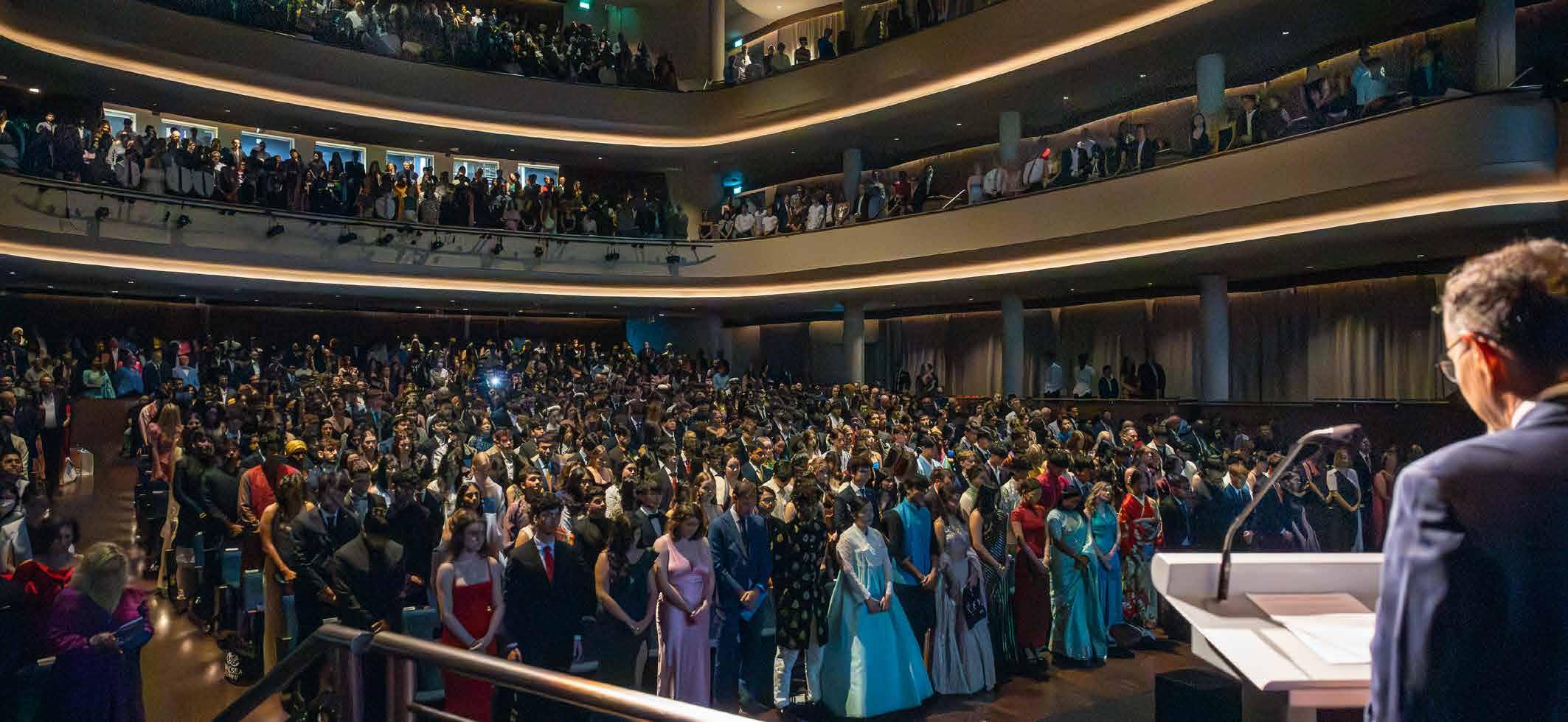 De grote eindceremonie voor Grade 12 vond als vanouds na de examens in mei plaats in een ceremoniële ruimte bij onze buren van de National University of Singapore