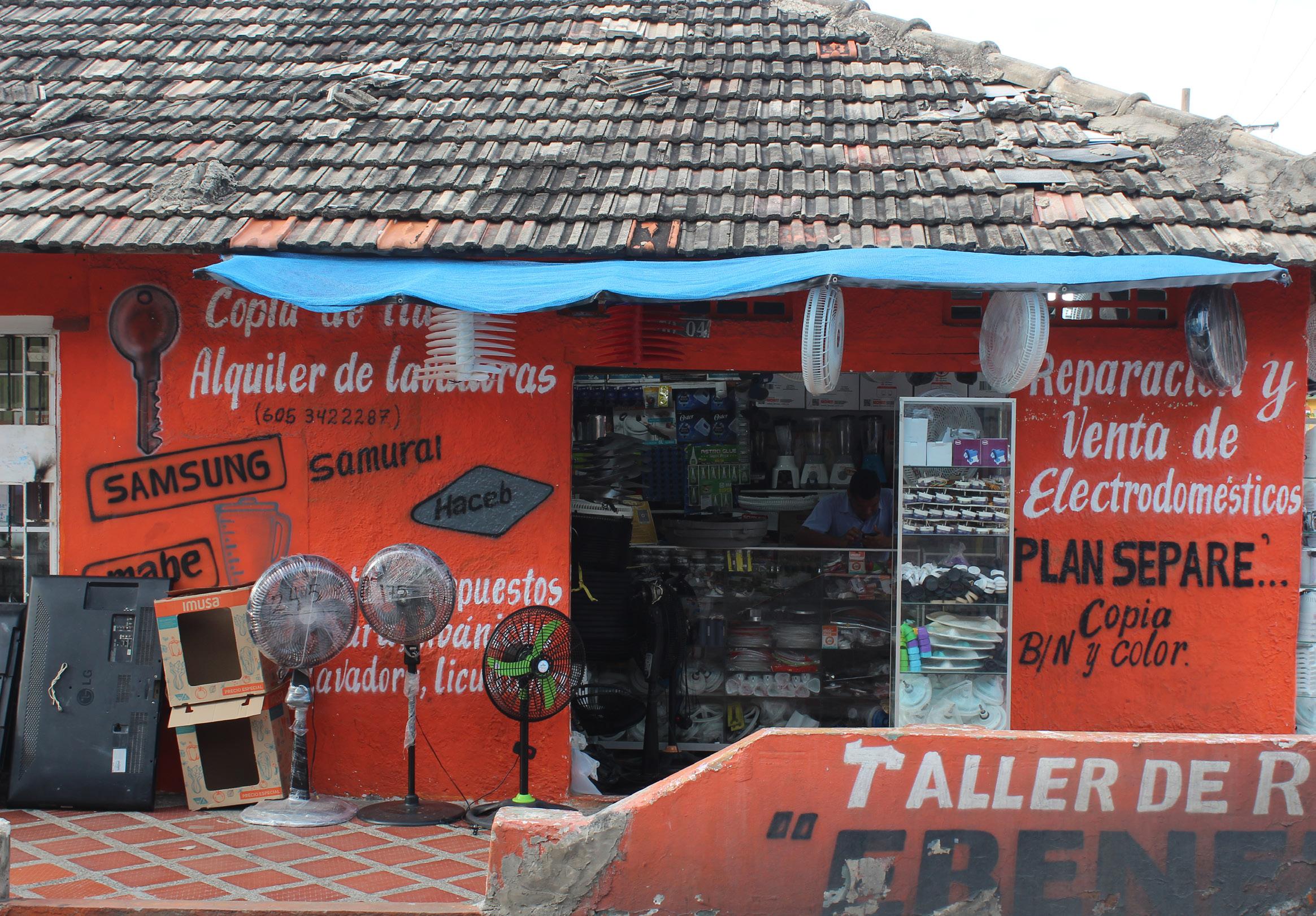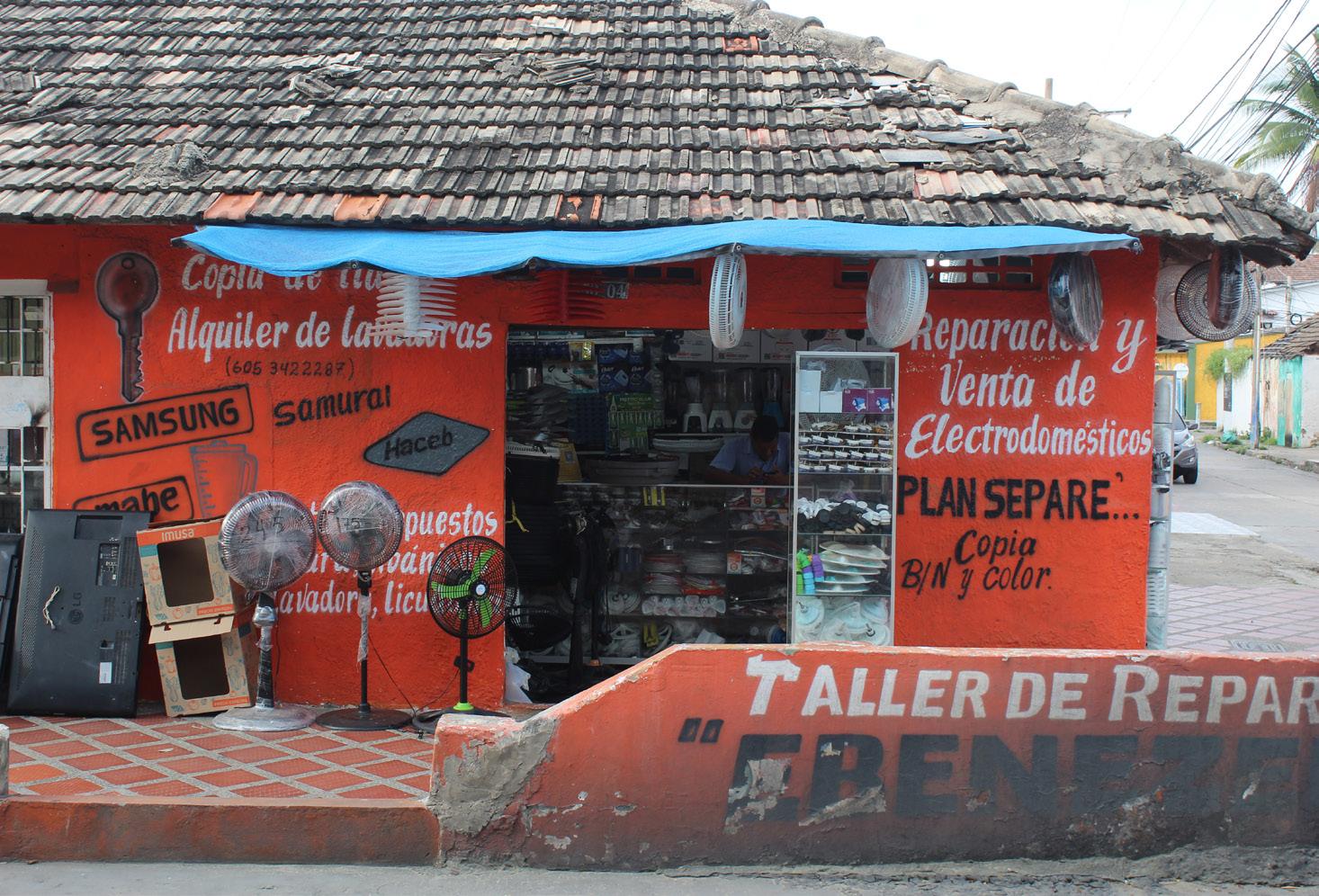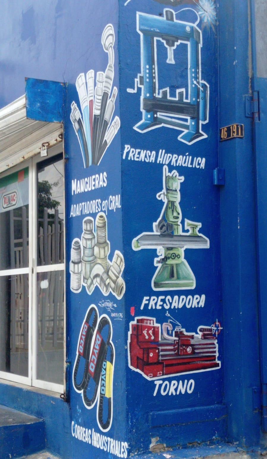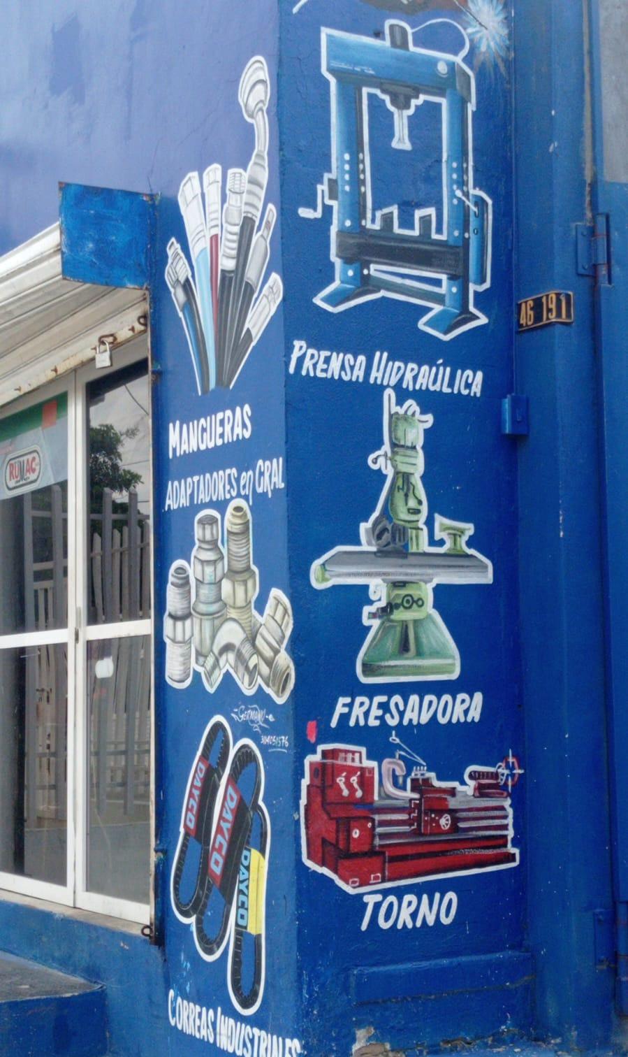 - En el caso de los locales comerciales, se encontró que los que tienen un enfoque en arreglos mecánicos, no emplean una gama de colores vistosos y tampoco se uti lizan tipografías caligráficas y ornamentales a diferencia de los carteles de ventas y restaurantes; ya que por lo general, lo que atrae la atención del espectador son las ilustraciones que describen el producto que se quiere vender.