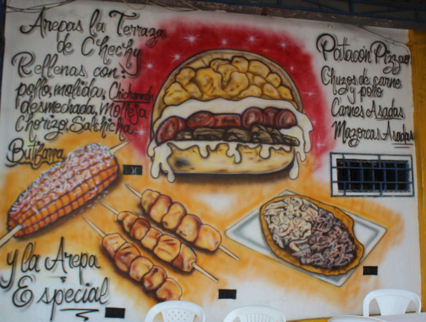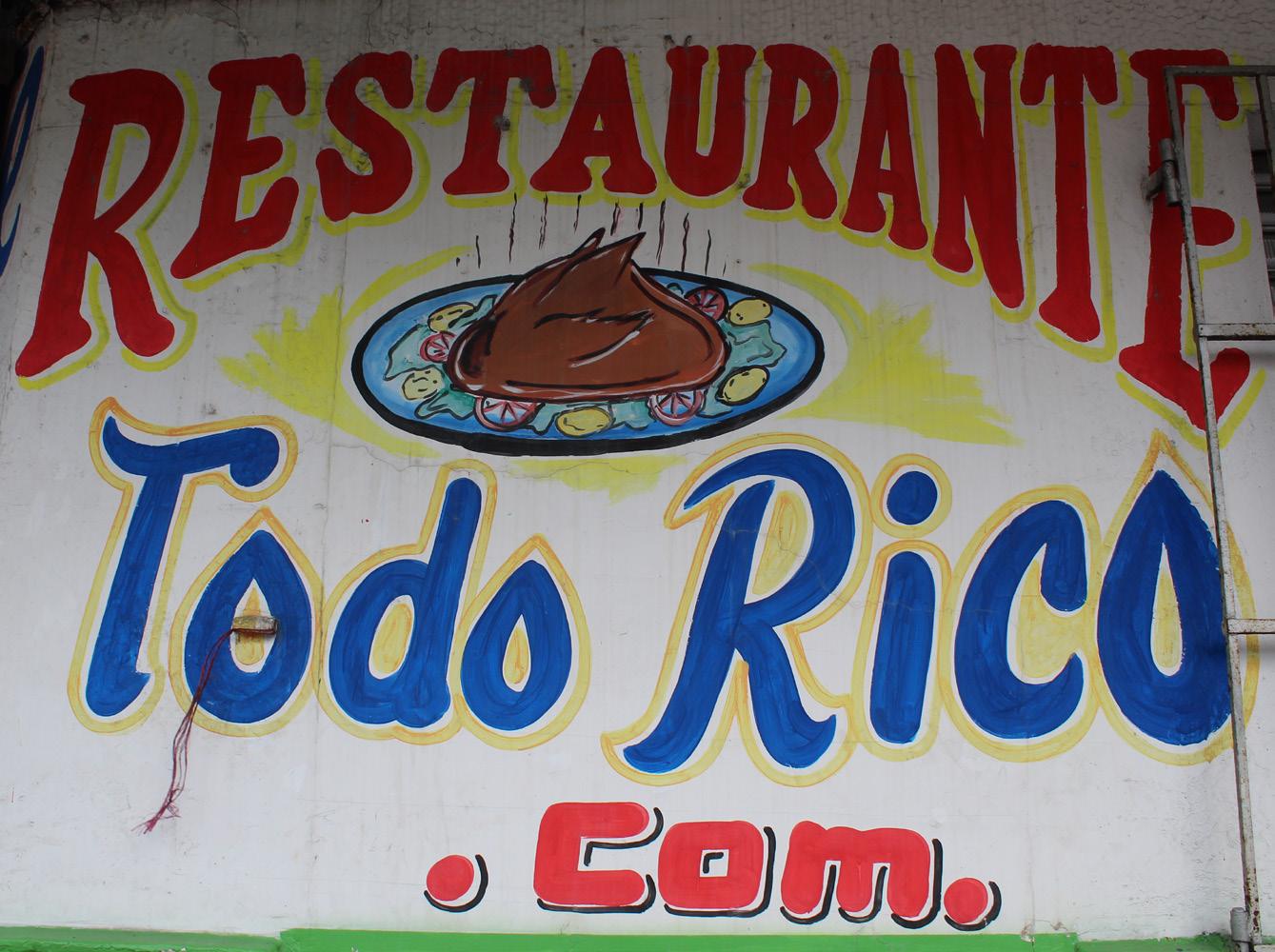 Para la categoría de los restaurantes, se en contró que la manera para atraer a la clientela es ilustrando sus menús en las paredes de estos mis mos, además de que utilizan colores llamativos y tipografías caligráficas que generan un impacto visual en quien los ve, y a su vez, estas expresio nes gráficas se convierten en obras de arte dota das de belleza e identidad cultural.
