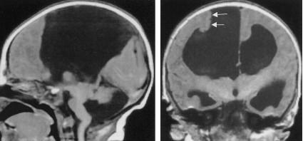 Assn: hydrocephalus, limbic anomalies, cortical malformations, absent septum pellucidum, multiples suture synostosis