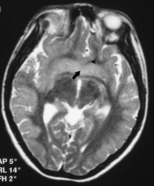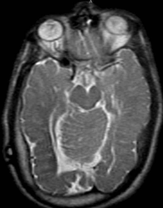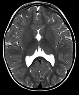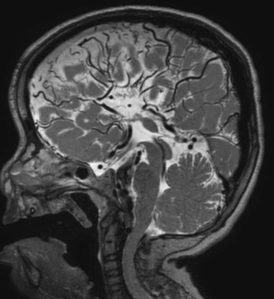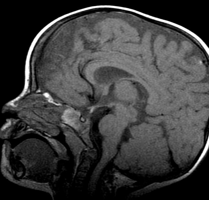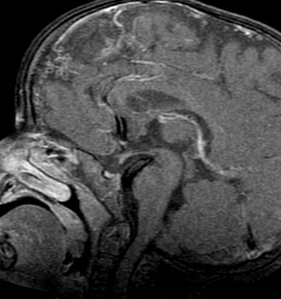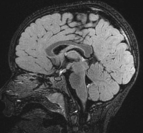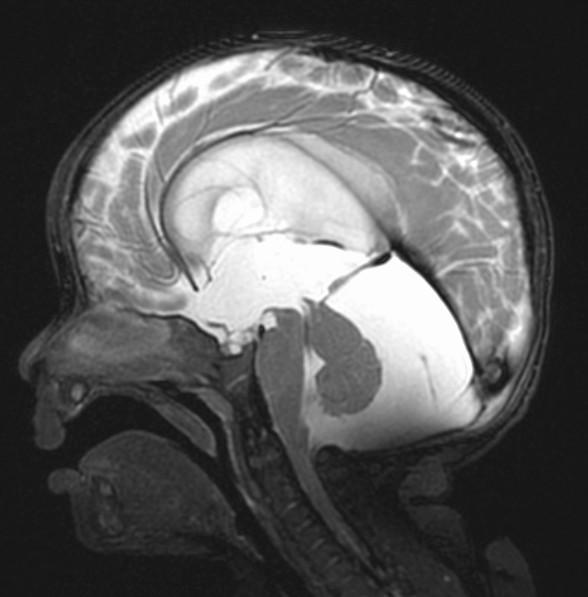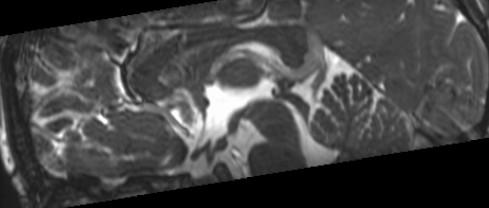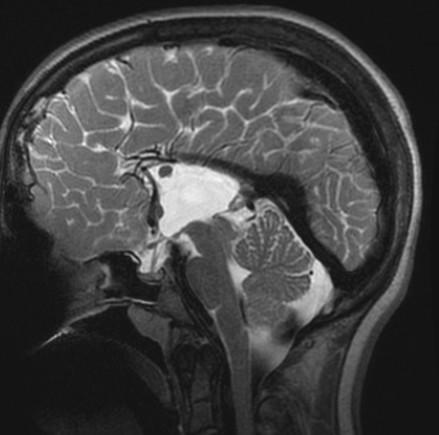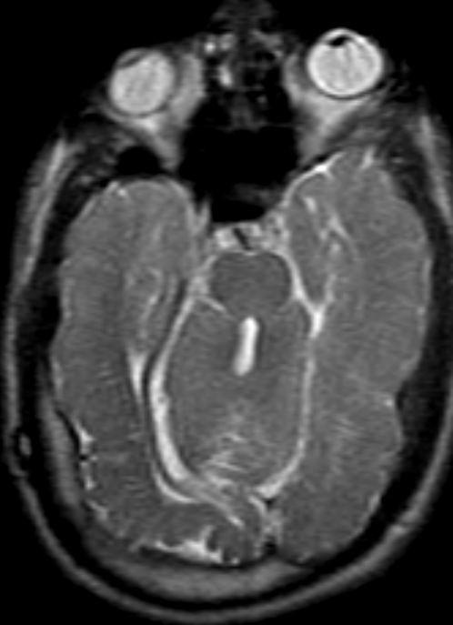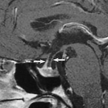 Note the CSF flow dephasing through the defect in the floor of the third ventricle.
