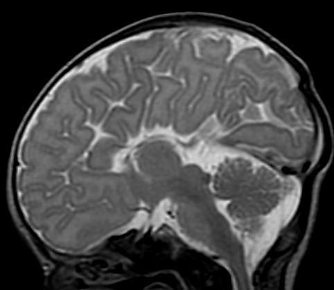 “Comma shaped Corpus Callosum with abnormal mid body…”