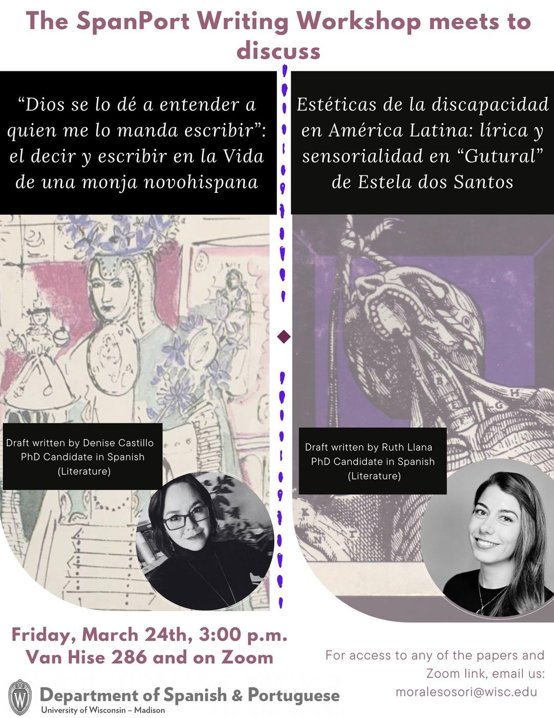 PhD Candidates in Spanish (Literature), Denise Castillo and Ruth Llana, wrote the drafts for March's Writing Workshop discussion.