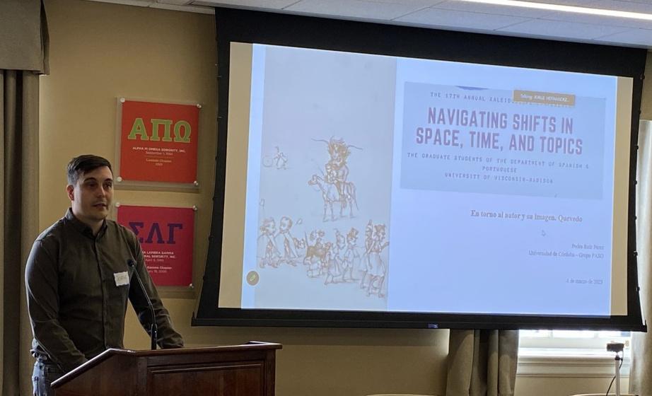 The 17th Annual Kaleidoscope had a wonderful turnout, with participants from across the country in-person and online. Highlights included invited guest speakers Dr. Tara Daly (Marquette University) who presented "Bartolina Sisa as Montage: Images of Indigenous Insurgency in the Andes, " Dr. Pedro Ruiz Pérez (University of Córdoba), who presented virtually from Spain on "En torno al autor y su imagen. Quevedo, " and Dr. Kara Morgan-Short (University of Illinois-Chicago), who presented "Understanding the neurocognition of adult-learned language: Context , knowledge, and learners. " Presenters from our own Spanish and Portuguese Department included Estefanía Galindo Navarro, Rocío González-Espresati Clement, and Pablo Pastore, with two presenters from LACIS, Andrea Guzmán Giura and Gabriela Yepes-Rossel, also representing UW-Madison. The event was organized by the Kaleidoscope Co-Chairs Michelle Dutton, Pedro Gonzales Durán, and Jorge Hernández Lasa, with funding support from the Latin American, Caribbean, and Iberian Studies (LACIS) Program, the Kemper Knapp Bequest, and the Graduate School's Professional Development Grant. Thank you to everyone who helped support this event!