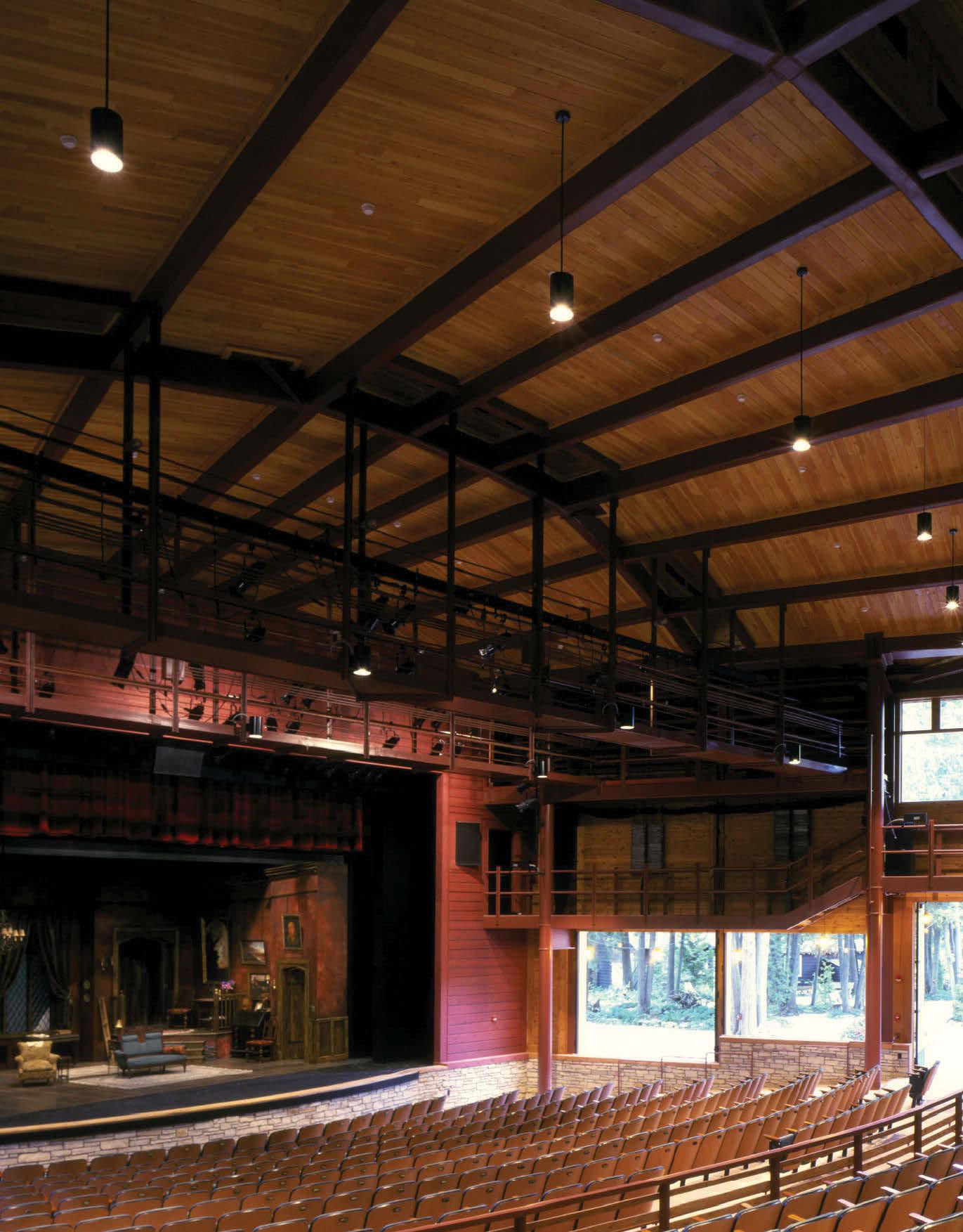 Although the season finishes in October, the theater is open year round, operating through the winter, preparing for the upcoming summer months. Artistic director Greg Vinkler and managing director Brian Kelsey meet to discuss the lineup of shows for the season. As the trees come alive again in the spring, the grounds transform into a hotel-like campus, Kelsey says, to accommodate those working on a show.