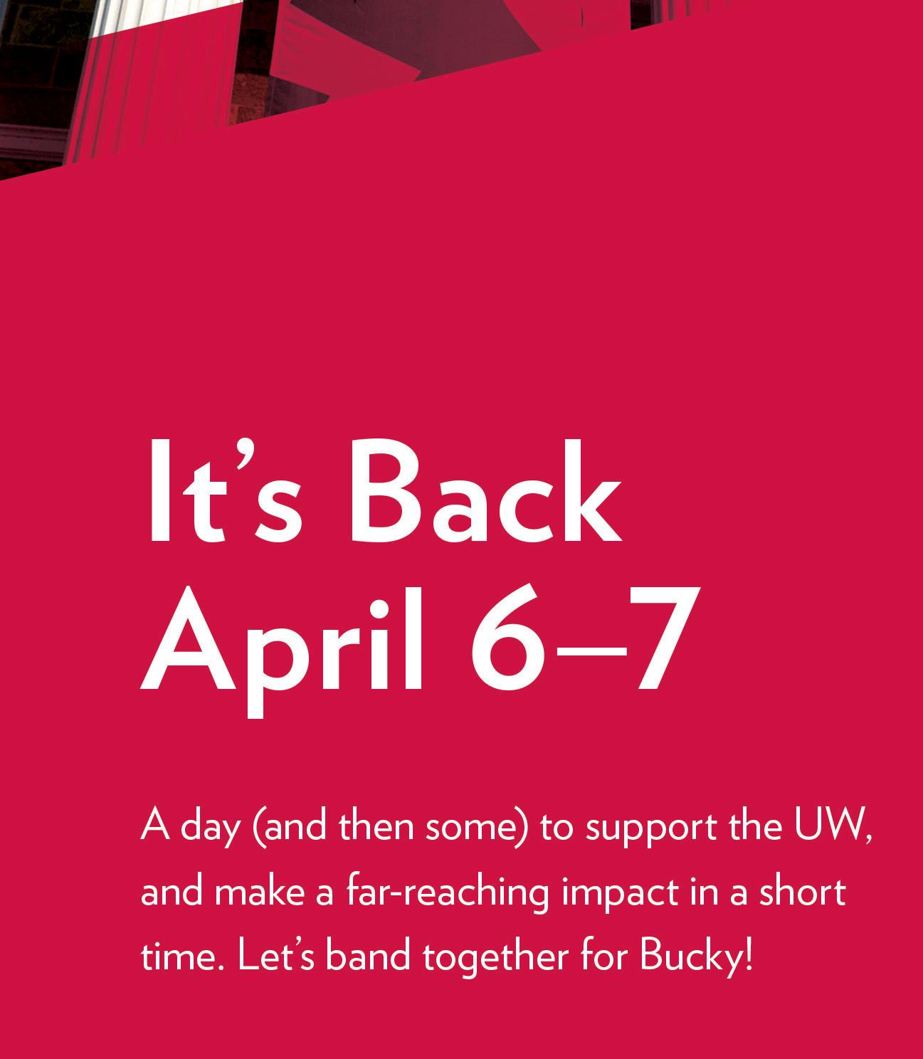 Get involved in this total UW experience. dayofthebadger.org #dayofthebadger Alumni Reunion JUNE 24, 2023 MADISON, WISCONSIN All alumni and their families are welcome as we celebrate graduates from the classes of 1988 • 1993 • 1998 • 2003 • 2008 • 2013 • 2018 www.vetmed.wisc.edu/alumni-reunion REGISTER TODAY