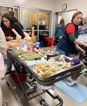 Left: Christoph Mans (Department of Surgical Sciences) leads a small mammal handling lab for DVM students.