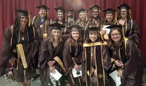 Graduating members of the inaugural Class of 2025 from the MSW Part-Time Program. From left to right are: Front row left to right: Larissa Skinner, Melissa Behringer, Savannah Schadegg, Dominique Maestas, Megan Richardson; Back row left to right: Alisha Gonzalez, Lorie Ordiway, Dustin Smart, Chelsie Klone, Kimberly Dickinson, Cheri Mateo, Miranda Nelson.