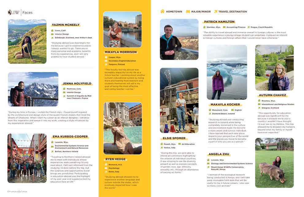 UWyo magazine brings to life the people and stories of UW. The publication is dedicated to advancing the mission, vision and goals of the University of Wyoming, and fostering pride, tradition and excellence by cultivating relationships with the UW community. Through meaningful communication and promotion of the university’s highlights and goodwill, UWyo aims to have a direct impact on giving, alumni and trustee relations, student and faculty recruitment, and public and government relations.
