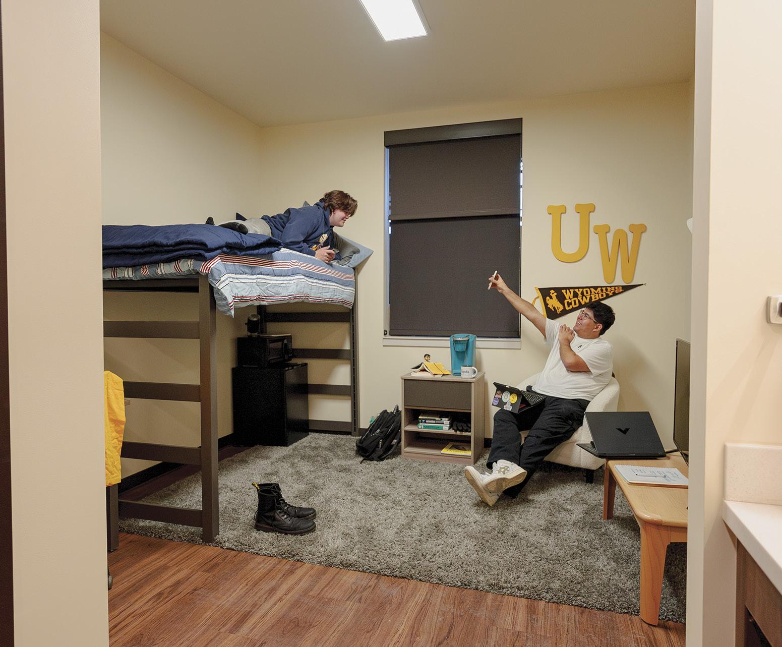 The new halls are only five and six stories high and located west of 15th Street, next to Half Acre Recreation and Wellness Center, and near the Wyoming Union and many other key facilities. The exterior design of the halls follows UW’s trademark Collegiate Gothic sandstone architecture. Attractive green spaces and a small amphitheater provide students with areas for outdoor events and recreation.