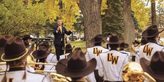 enjoy learning about our alumni, whether they are celebrating their 50th reunion at Homecoming or are new graduates in search of their first jobs. We all share a deep sense of pride in UW and easily bond over shared experiences in Laramie, many of which are timeless. Surely every reader can relate to the alumni highlighted in this issue in some way, whether it be through strolls across Prexy’s Pasture, freshman classes in the Classroom Building, dorm room stories or the sound of the Western Thunder Marching Band on a crisp fall day.