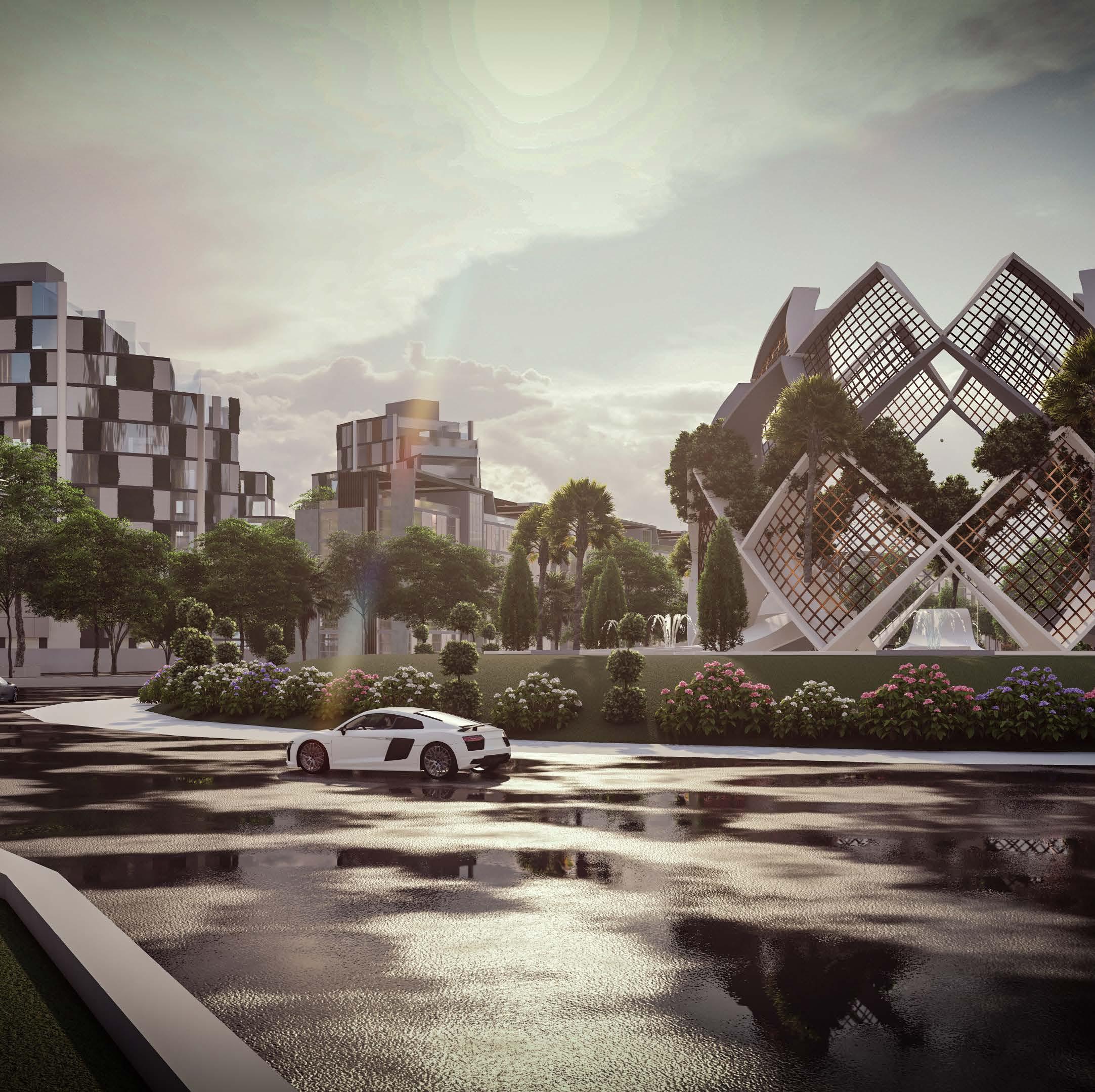 This Project was a visulization project of a housing community in Islamabad.The initial planing of the project was completed and I have to visualize it to attract the buyers. The basic concept was a modern housing society with green spine in corporated in it and with all facilities provided in the vacinity.