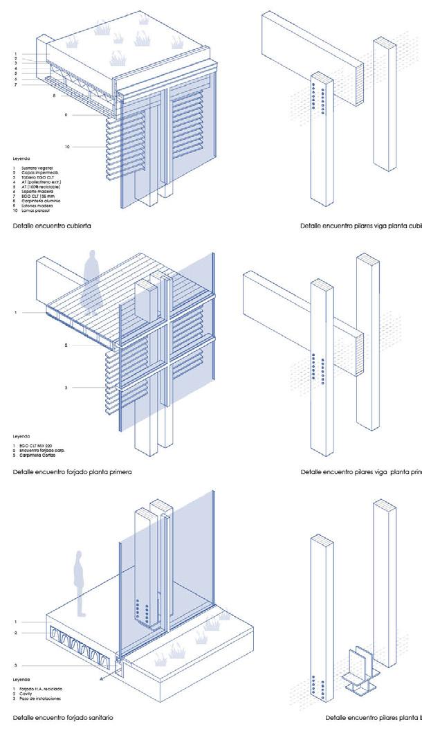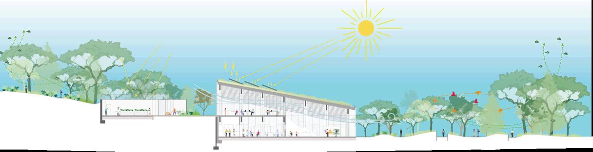 These buildings have been designed with modularity in mind, ensuring that each solution presented on these pages can be seamlessly applied throughout the entire complex. The main structure utilizes structural CLT for its exceptional strength and sustainable benefits, enhancing durability while supporting environmental stewardship. Additionally, the concrete components are designed to reduce the project’s carbon footprint, reflecting a forward-thinking approach that unites architectural excellence with ecological responsibility.
