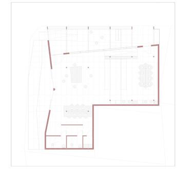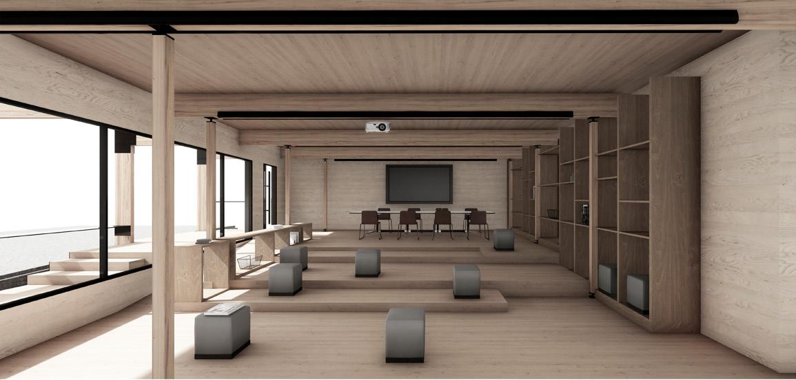 This space is primarily designed for focused work and collaboration among area experts. The pavilion integrates inner spaces with three distinct zones, each dedicated to different teams specializing in specific focus areas. This structured approach enhances understanding and strategy development.