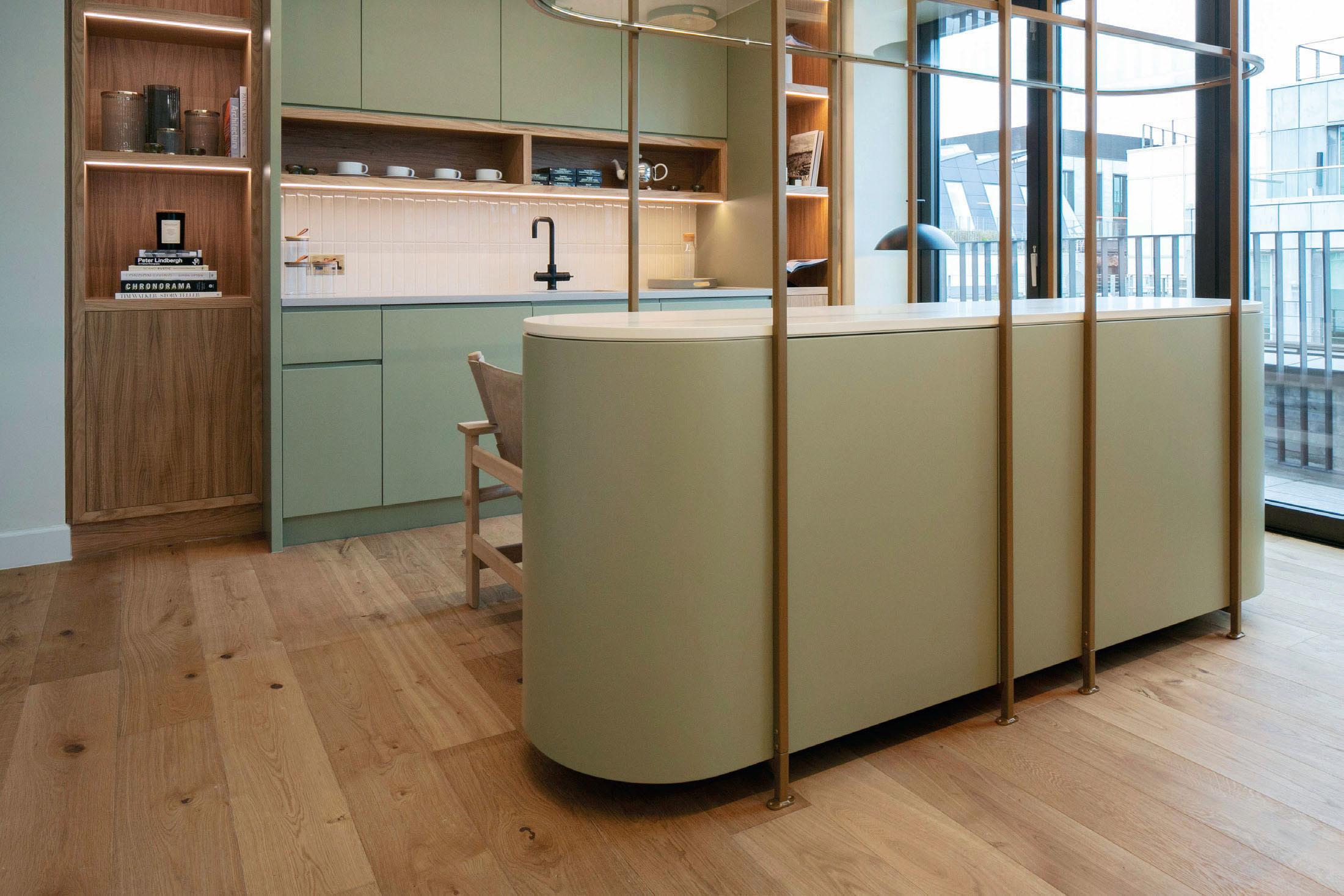 “Working with a small footprint and restrained palette, the use of wooden floors provides a seamless, warming blend of texture throughout the open plan. This offers a great juxtaposition to a residential aesthetic. The V4 Smoked Oak plank offered the most matted effect of wood tone whilst oozing the warmth and heritage of a classic that never goes out of style.“