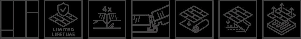 These icons will give you information whilst browsing our flooring collections. For detailed specification scan the collection QR codes and visit our website.