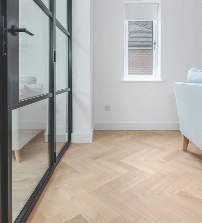 The flooring is meticulously installed across all ground floor areas and continues through both the main and top landings in each home, fully bonded for unmatched longevity. The project stands out for its attention to detail and high-end craftsmanship, particularly with the intricate herringbone design.