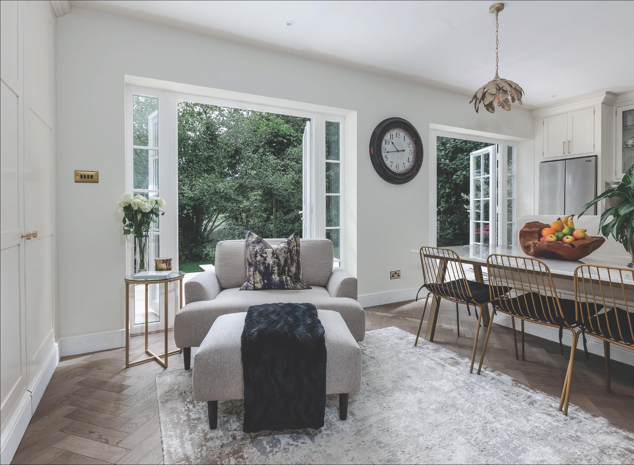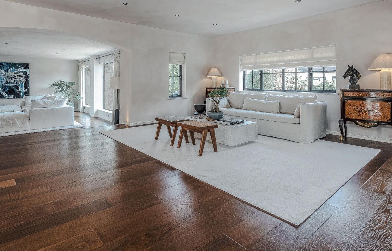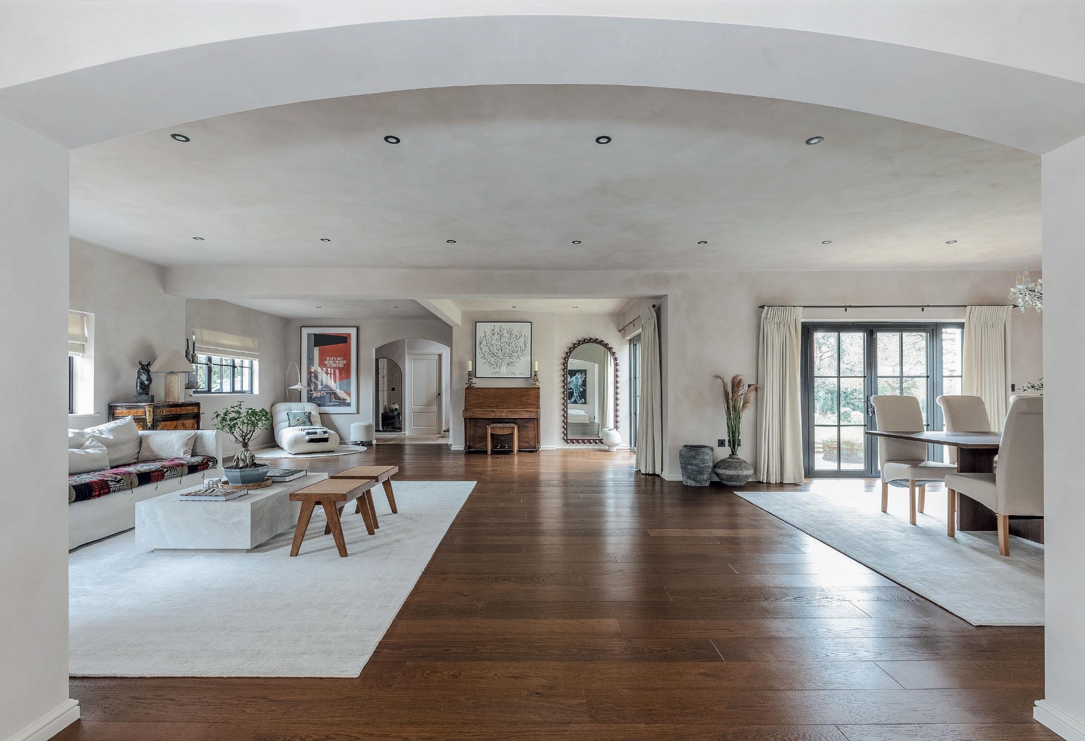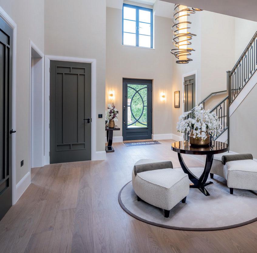 Bjelin Hardened Wood Earth Grey Oak, creates a seamless flow throughout the expansive ground floor of this impressive Ascot home, harmonising with both interior and exterior features.