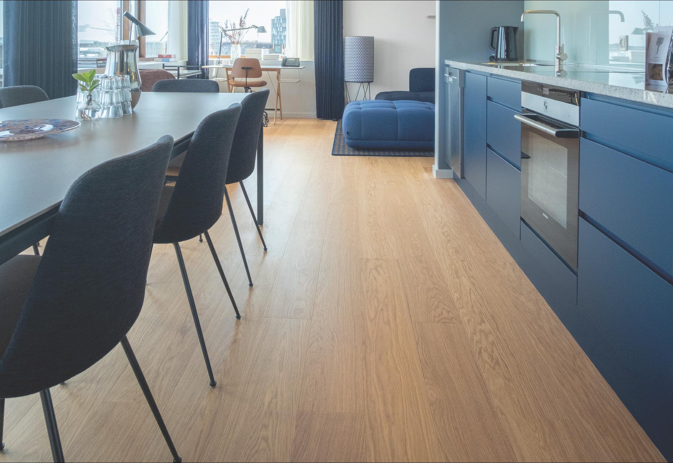 Wood flooring is a great natural choice for kitchens and will perform well if properly cared for. Oak is particularly well suited as it is naturally anti-septic, and if regularly swept and vacuum cleaned, will not require the use of bleach or disinfectant. It is important to be aware of how a wood should be cleaned and maintained to keep it stain and water-resistant and in great condition.