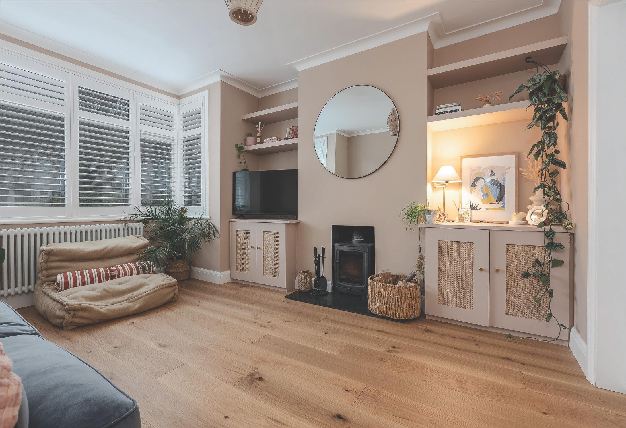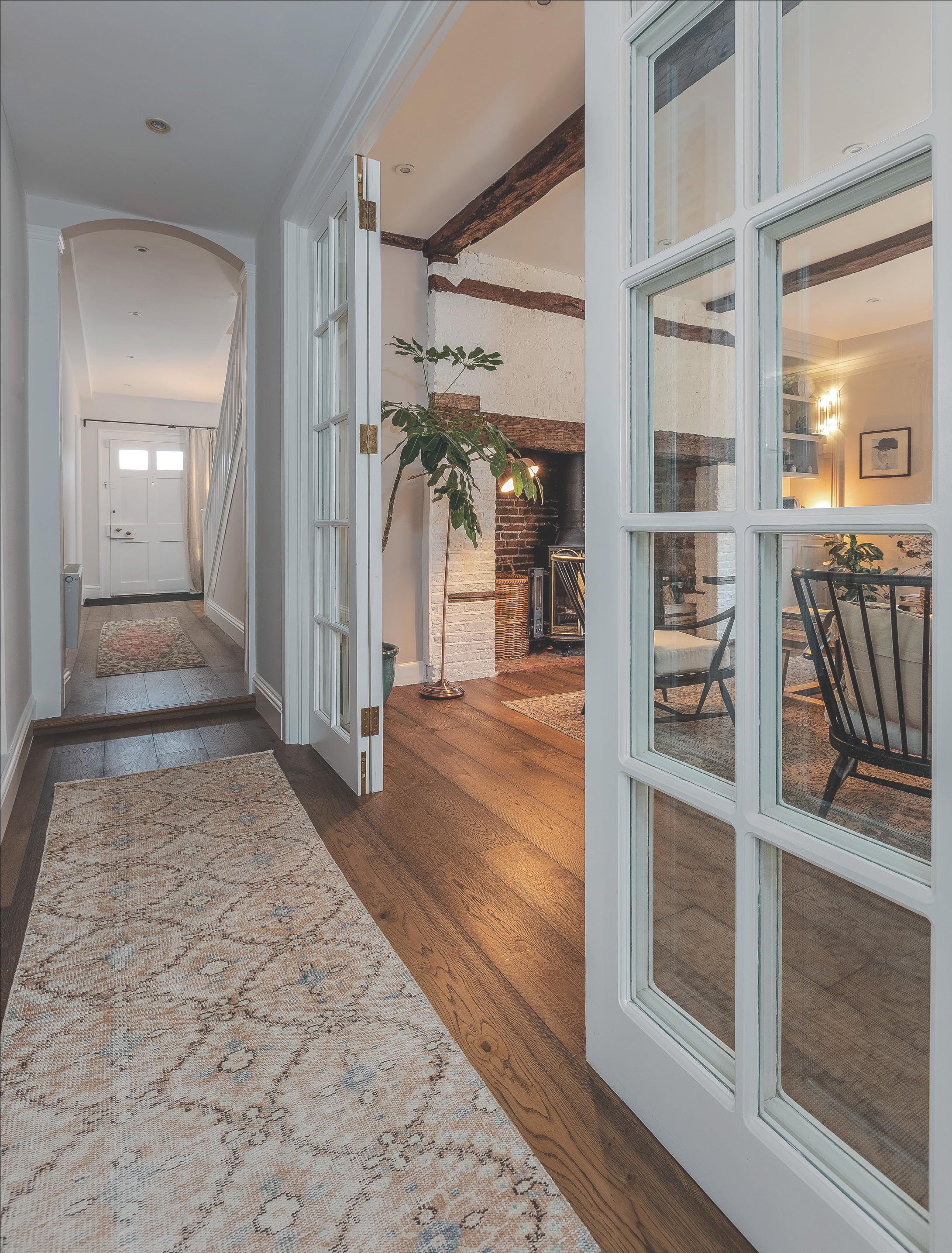 "V4's black walnut is warm, welcoming, and wonderfully cosy, perfectly suited to this room. I love the way it blends seamlessly into the character of the home, much like the elm floors that would have been used in houses of this age. Even though it's a modern product, it feels as if it’s always been here, becoming part of the family – part of the history of this listed manor house, going forward into time as an integral element of its story.”