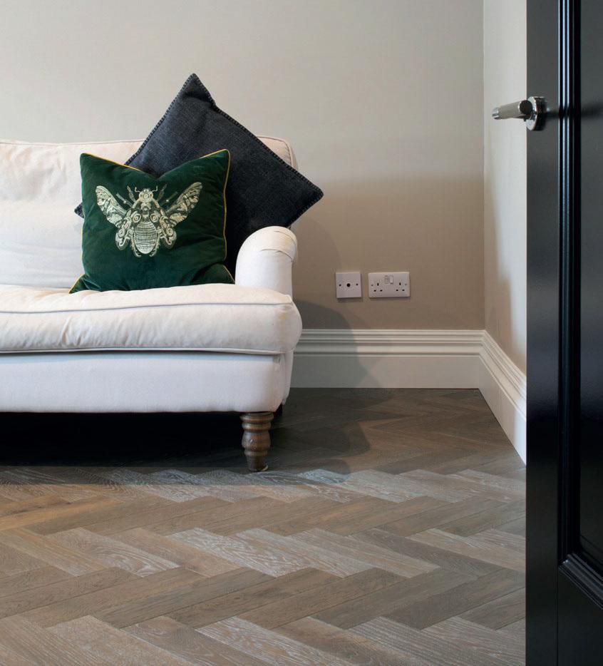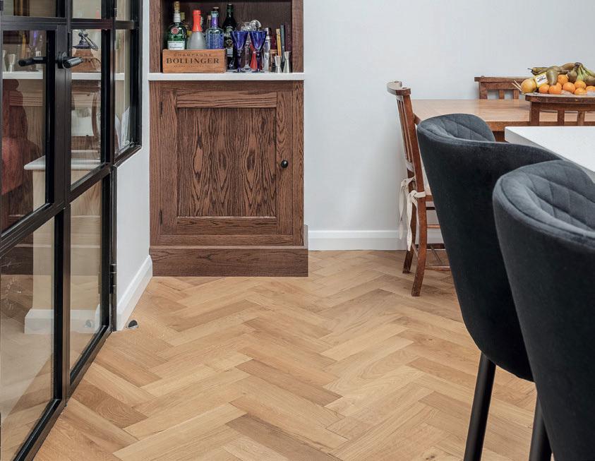 “I’d seen V4 floors on Instagram and was always drawn to the Deco Parquet herringbone styles so I started my search there and it was really straightforward to choose the floor. So it was no surprise that when samples arrived it was easy for me to pick the Natural Oak finish as my favourite.”