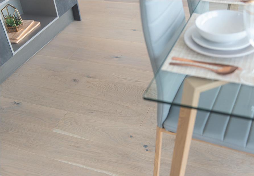 “The brushed lacquer makes the floor more tactile, giving it a natural and authentic appearance,” she says. The Select grading was chosen for its serenity.”