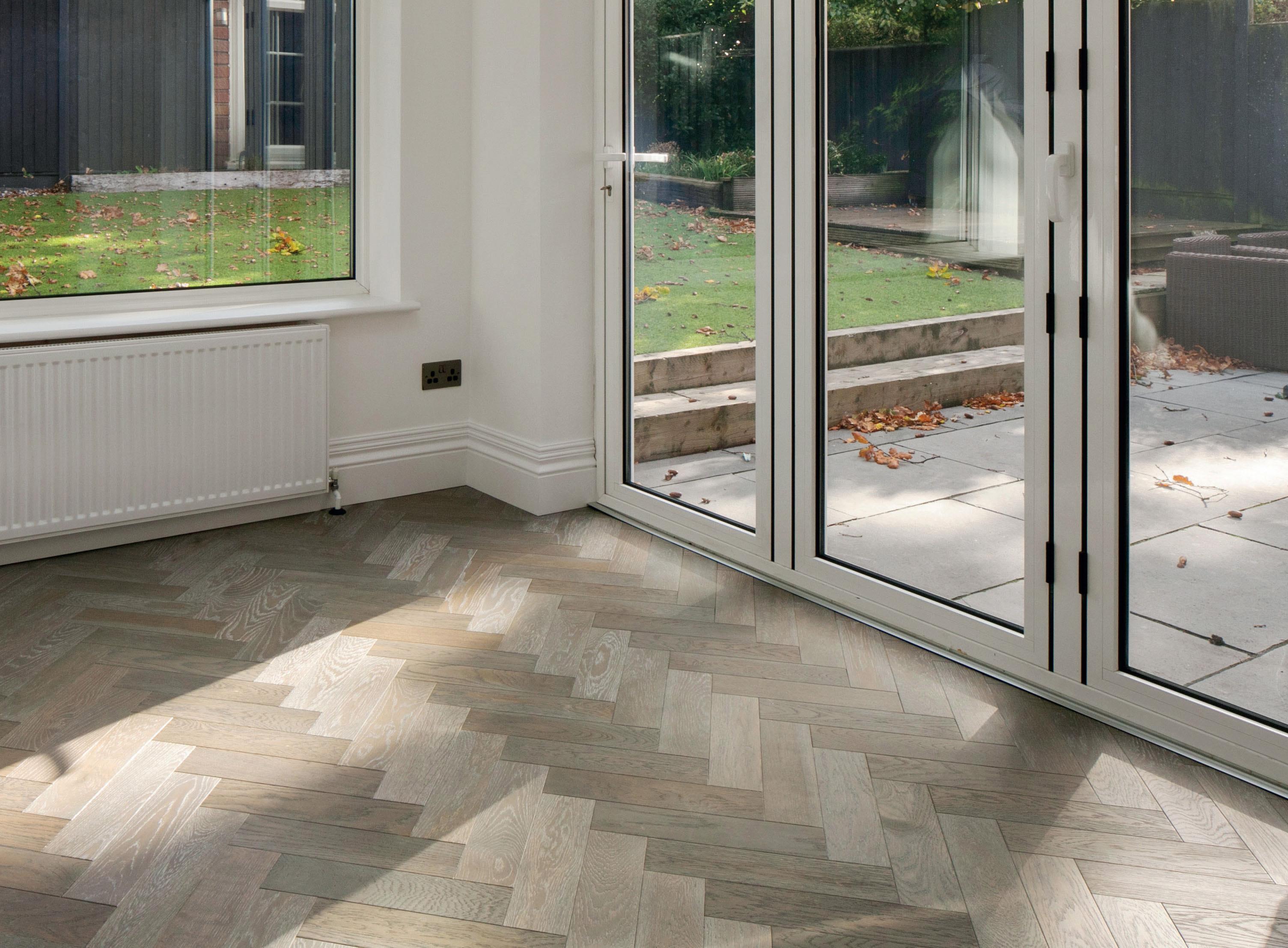 Matching finishes in Herringbone, Chevron and Plank featuring lightly brushed European oak top layers, available in our natural Tundra finishes.