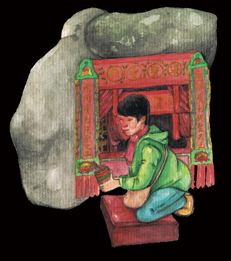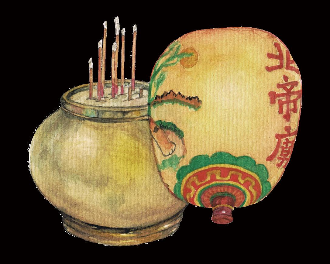 1 洪聖古 廟 面向海洋一塊大石上的神壇,經多次填海後現佇立在灣 仔內陸的中心地帶,2015年曾進行百年來首次整修,內外 均保存著其傳統風貌。