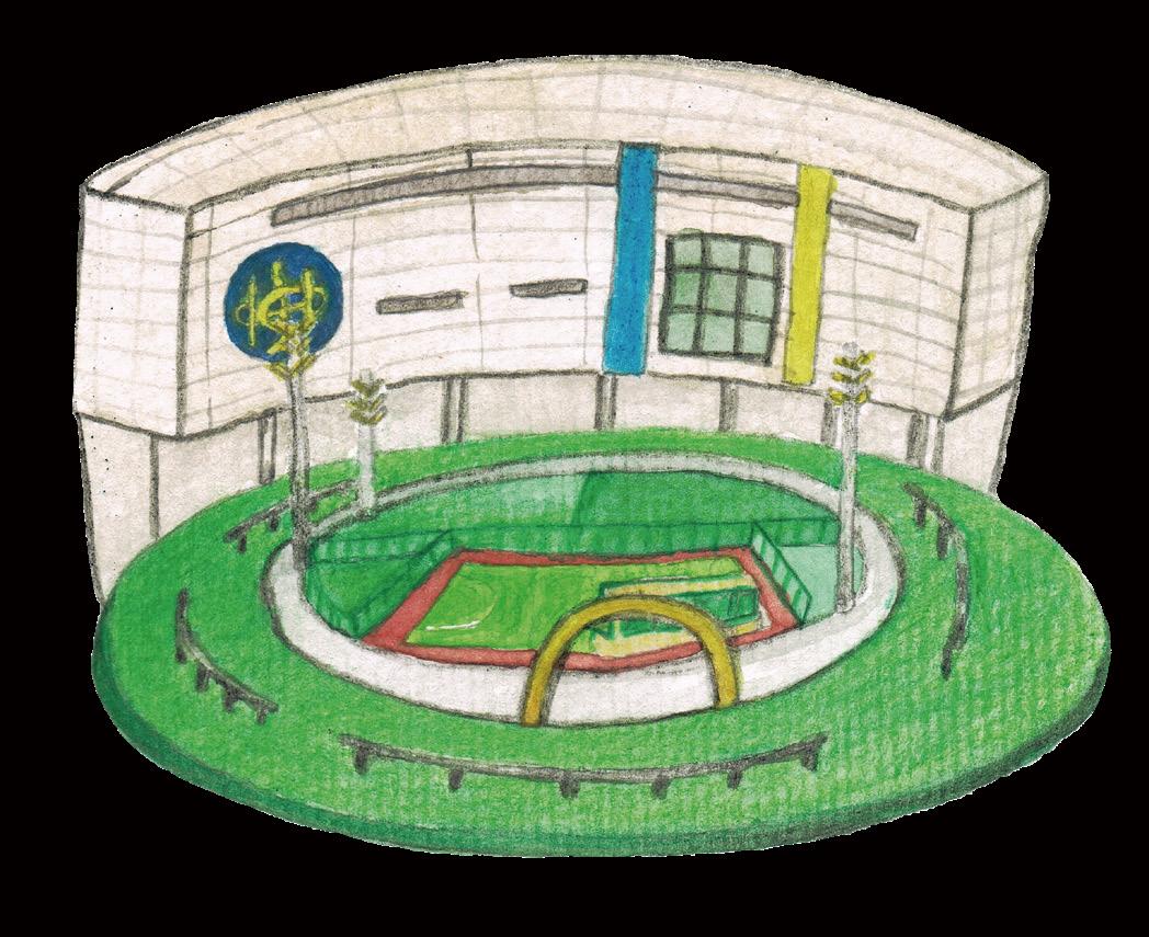 灣仔區著名地標,1934年由當年輔政司修頓爵士為發展 灣仔而興建︒ 昔日的傍晚時份,球場成為市民聚集交 流與消閑的地方,像大笪地販賣著各式小食,還有街頭 表演為居民提供娛樂︒舊日貝夫人健康院位於修頓球場 側,後來因興建地鐵港島線而拆卸︒